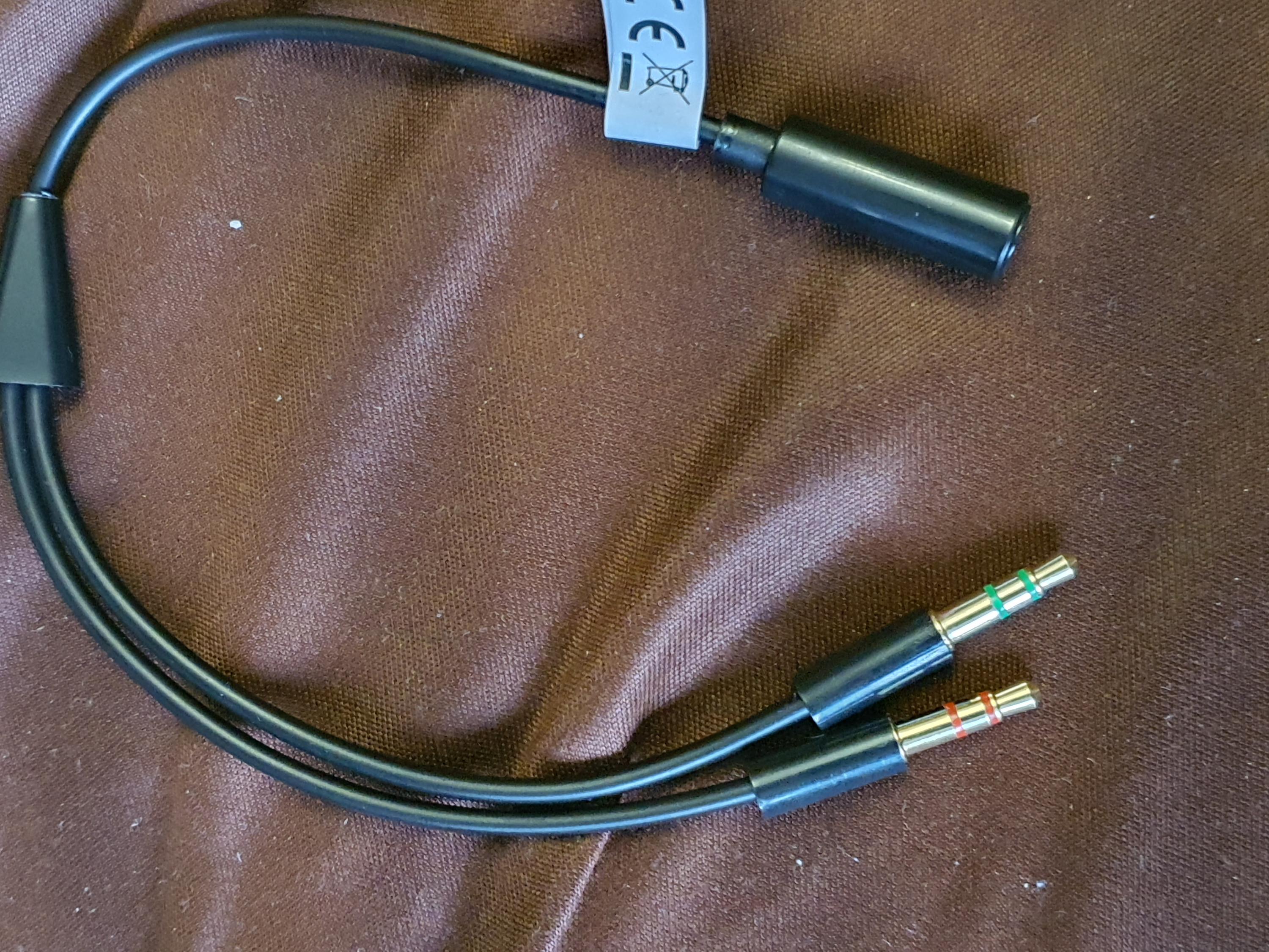 So I purchased it separately plug one end of the mic to the headphones V-Moda and other end to the female plud**of the adapter (rounded one-picture 2),and from adapter green to headphone jack and red to mic jack on PC.