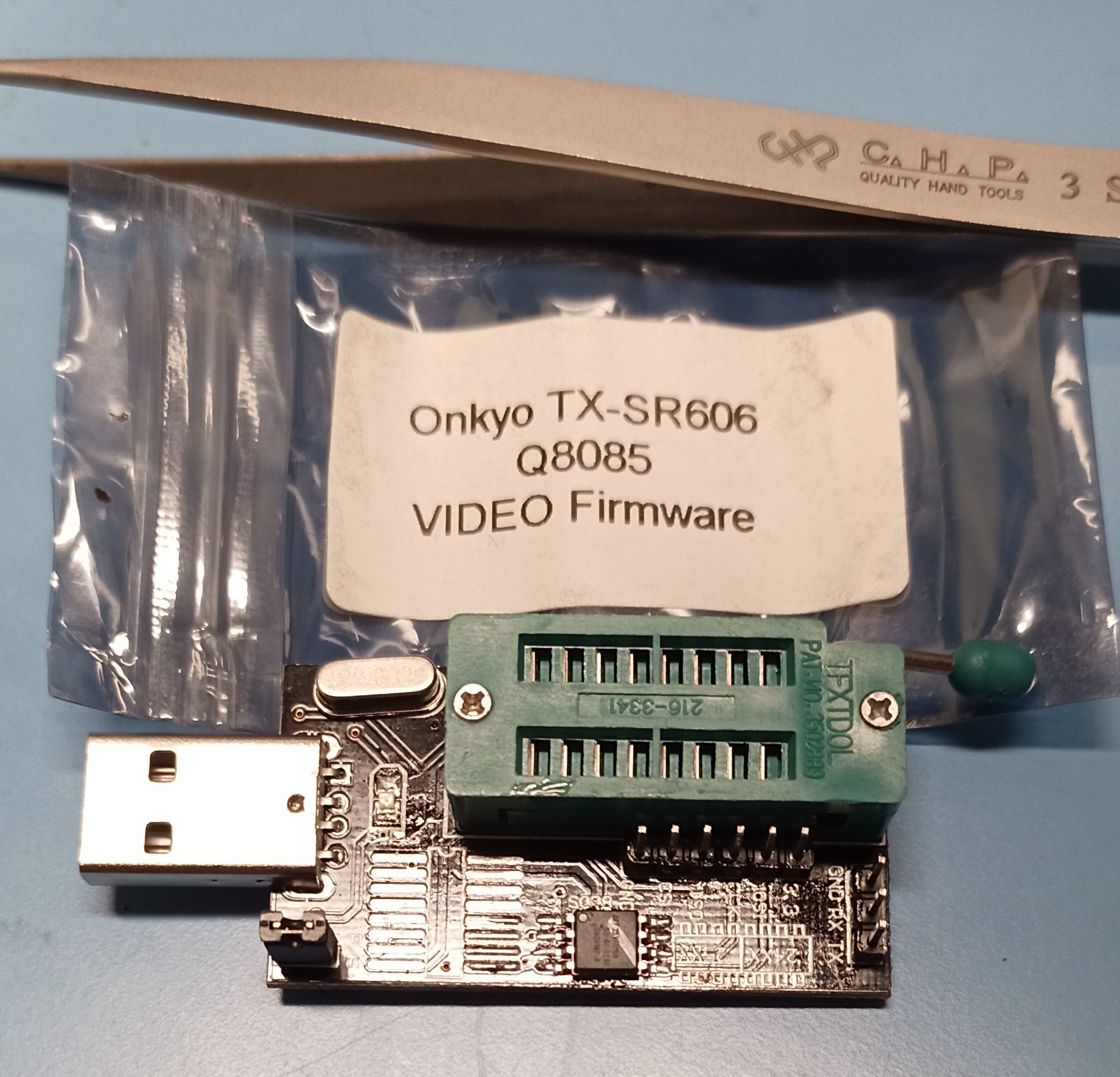 I am repairing an old Onkyo TX-SR606 with a bad HDMI board. I replaced most of all the caps and the board is back alive. However i don't have an OSD or any output signal on component video. It is caused by an empty video EEPROM Q8085 probably damaged or wiped because of the bad powersupply on the HDMI board.