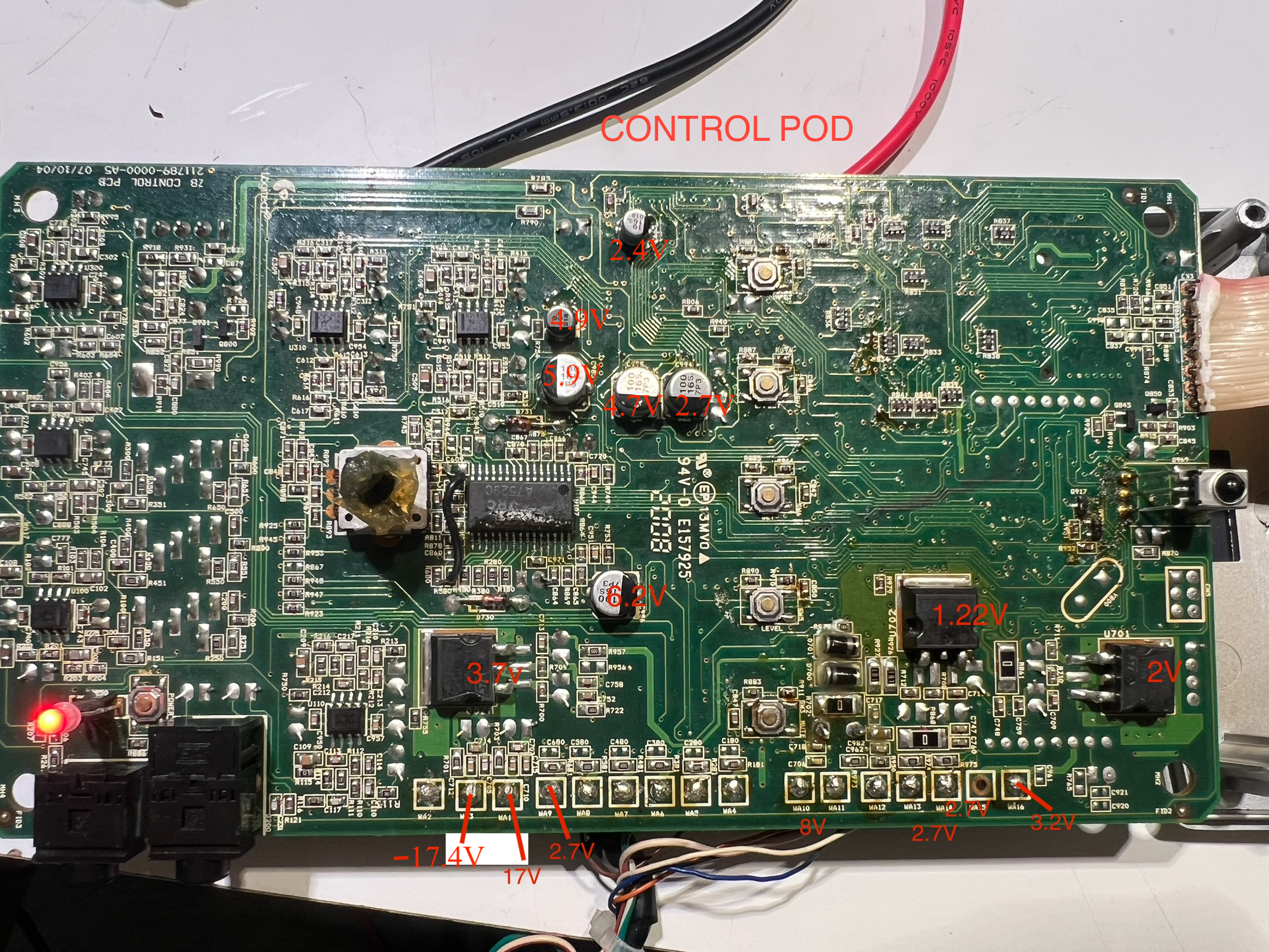 Long version: replaced a blown TDA7294 in the sub and now the set powers on but has no sound at all. The reason I believe the pod may be bad is because I don't get sound on the headphone jack either ! There's no info on this pod whatsoever, much less so a schematic, other than reports of a CS42526 IC going bad and causing lack of sound among issues. There's no way I can confirm, because I don't have a replacement pod. The pod itself appears to be a more recent revision than most people have because it doesn't have a "power" button, but rather a "headphones" button in its place - it never turns off. It's always on as soon as you connect the power ! I found a schematic of the sub (amp) part and I'm trying to at least understand how the mute and stby pins for the TDAs are supposed to work. It could be the amps are turning on just fine but the console is not sending any audio into them, so I was hoping I could turn on the amps and feed my own audio to at least confirm the TDAs are working before hunting down a replacement pod.