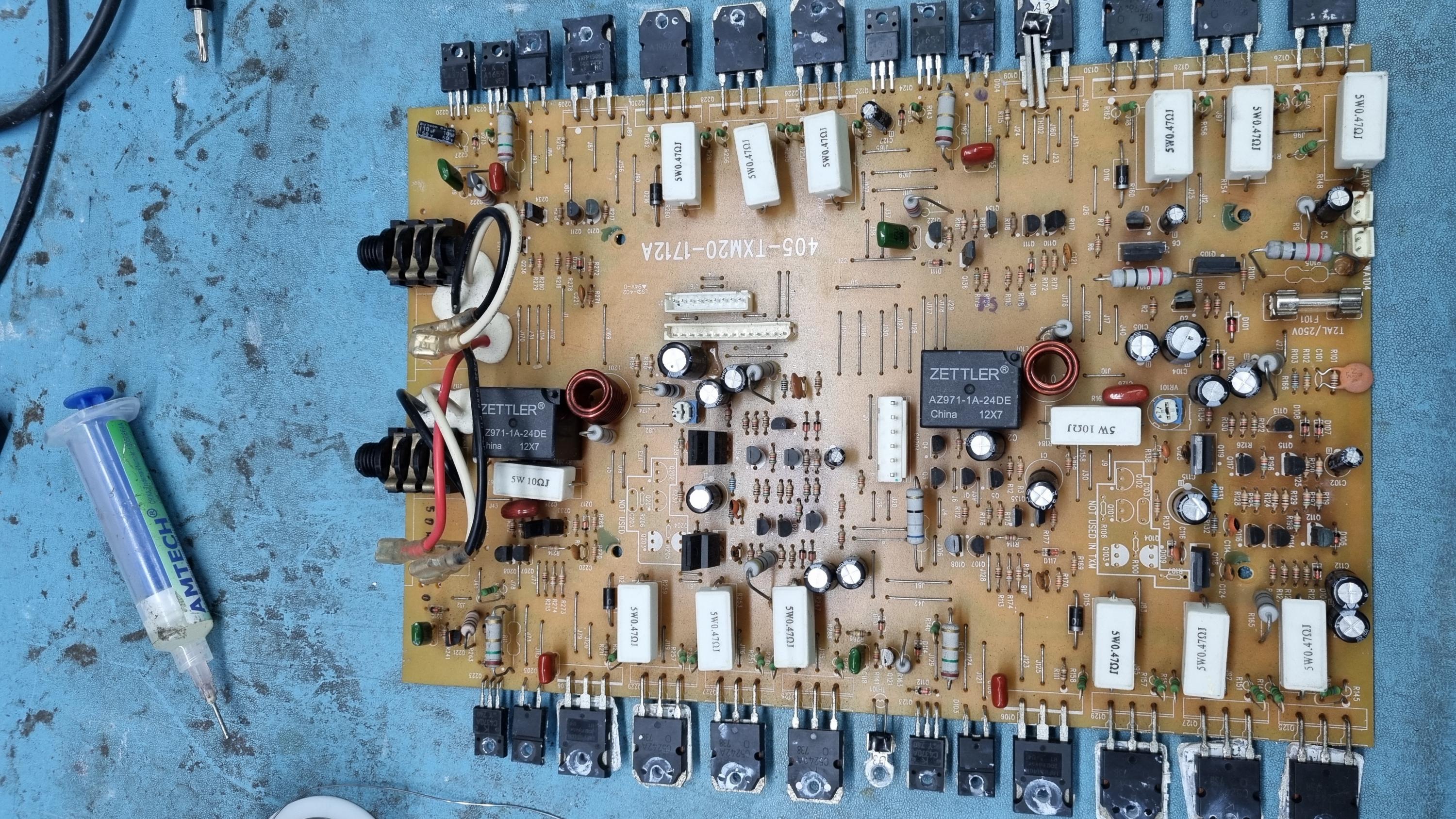Does anyone have a schematic for this? The fault is both protect lights on. I fixed one problem already that was causing the negative rail to both amplifier channels to go to -90V with +45V on the positive rail (It's a class G design)