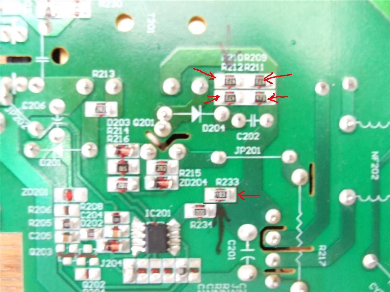 I have also set my dmm to Continuity and found that the marked surface resistors are short I think that is the word for it EG all other surface resistors i get a reading, but on the 5 marked with red arrows there is no Continuity?