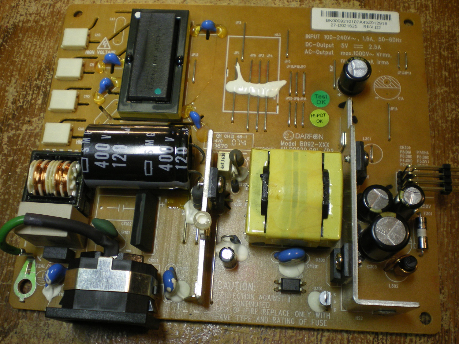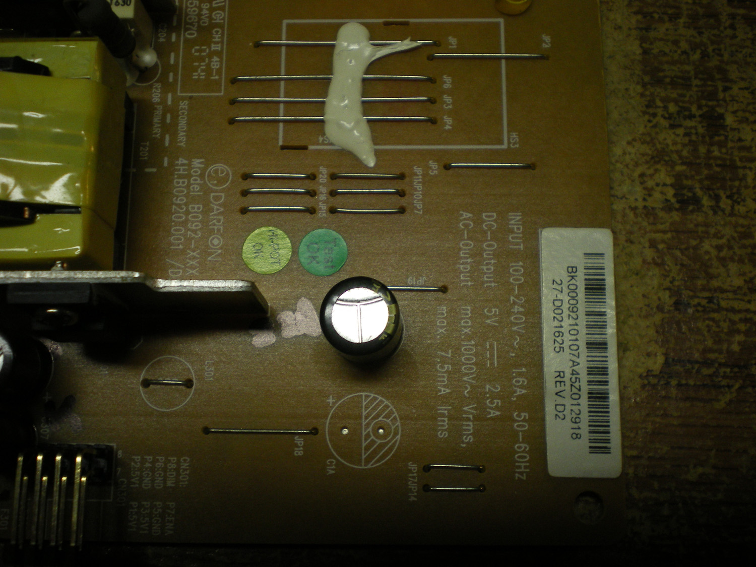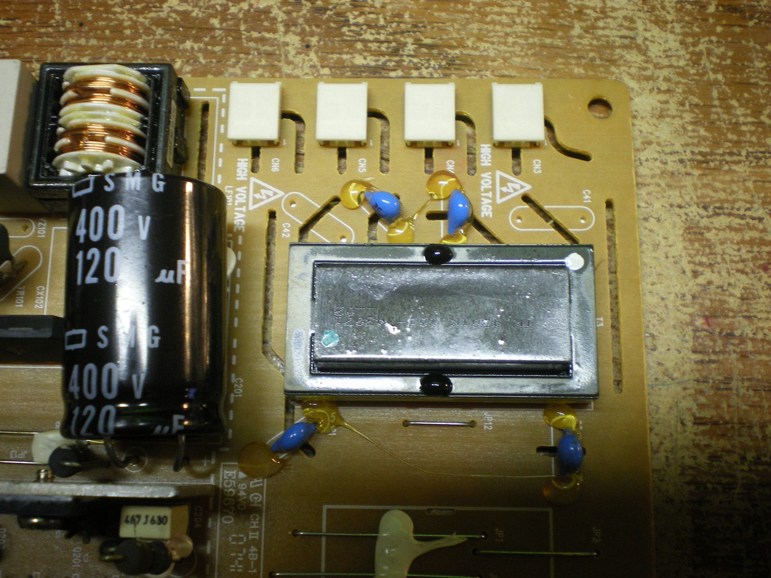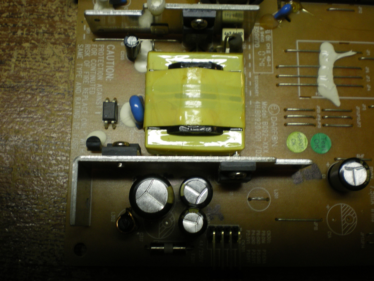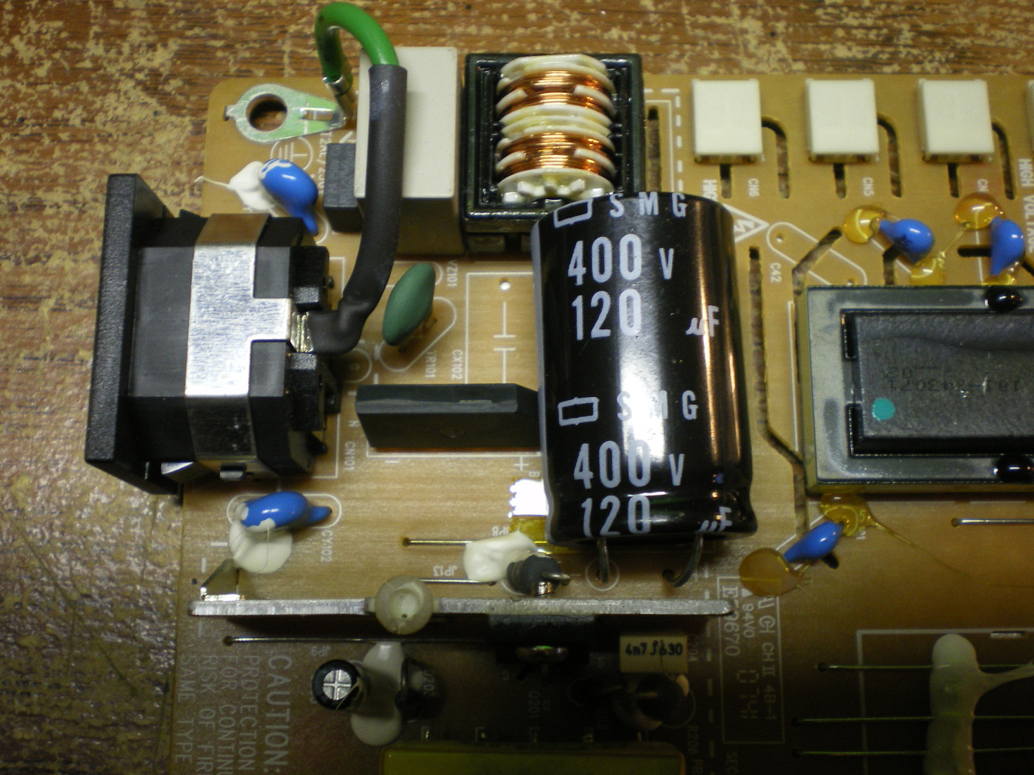 I'm really new at repairing LCD's... I have a decent understanding of basic electronics, but am a mega noob when it comes to repair. So far, I have replaced all of the cheap capacitors that were on there (including the large filter capacitor), and that did nothing. I've checked the fuse, rectifier, as well as any large resistors. All check out fine using the appropriate multimeter tests.
