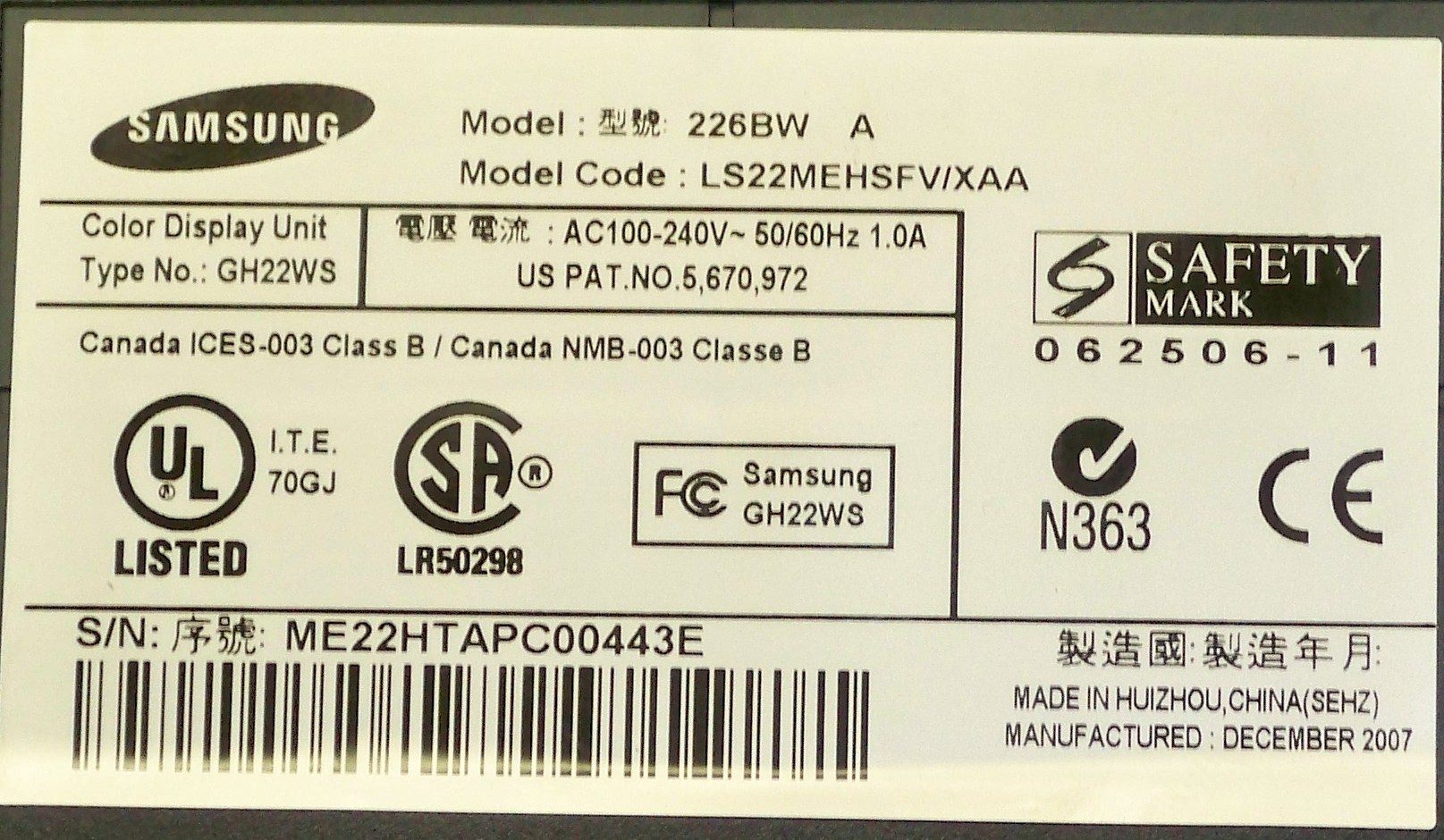My neighbor gave me his 2 year old Samsung 226BW after it died completely on him a few months ago. Having been an electronics hobbiest for some time, I welcomed the chance to try to give it a new life.
