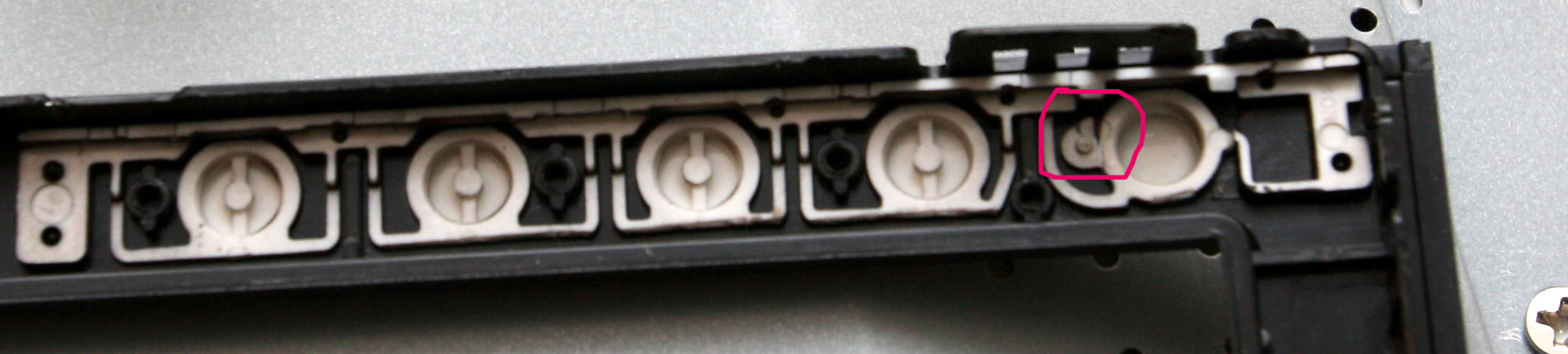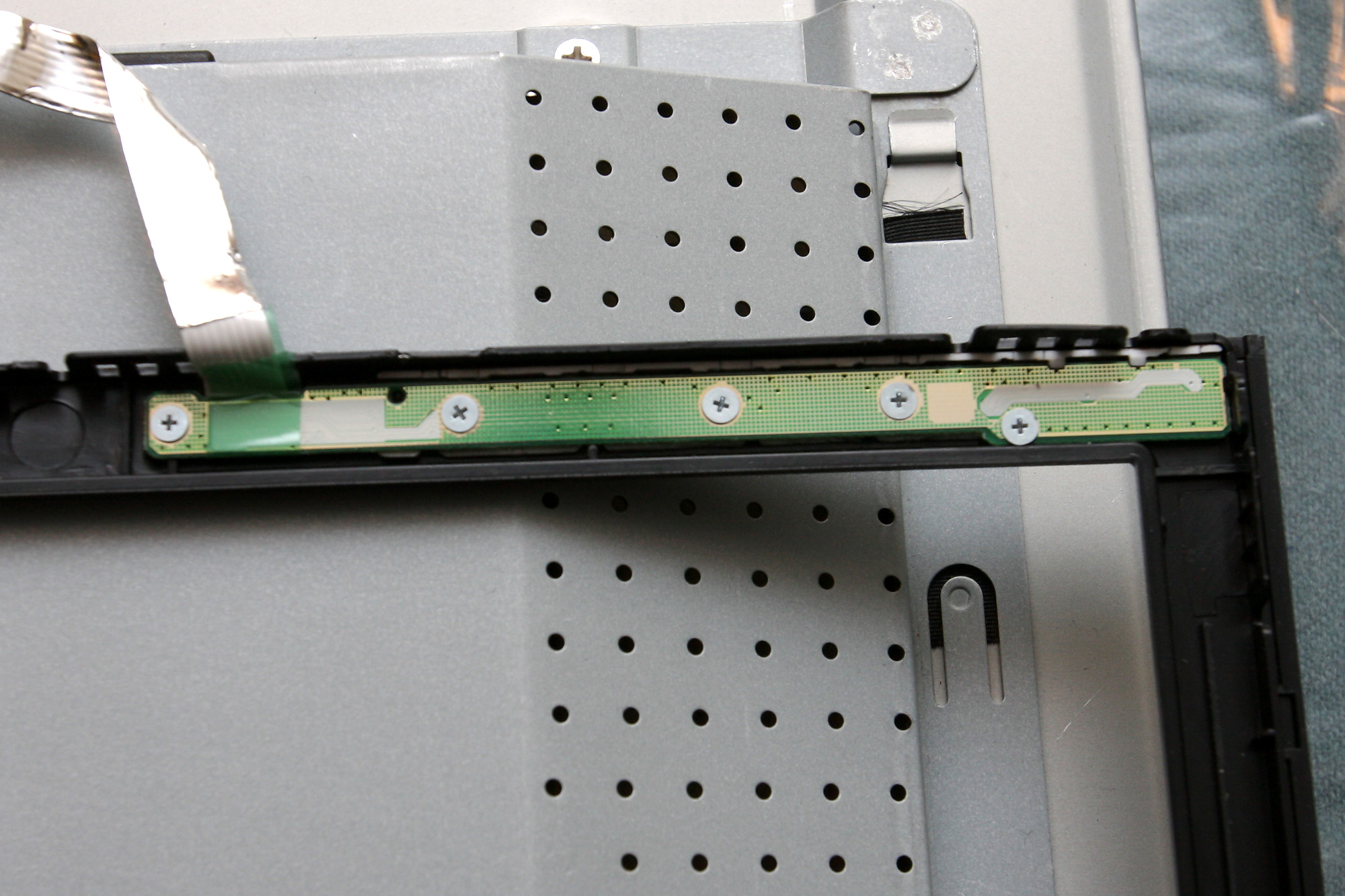 The next thing I decided to check were voltages at the ribbon cable going to the front control buttons. When I did this I accidently raked my testing probe across the ribbon cable and all of a sudden the monitor came to life. There is an obvious problem with the pled button you cannot feel the clicking of the button when it is pushed, but by tricking the video board to thinking it was pushed [by causing a voltage change] The monitor will work and continue to work even after unplugging the power cord and reconnecting the power cord. It continues to work even with the button ribbon cable disconnected.