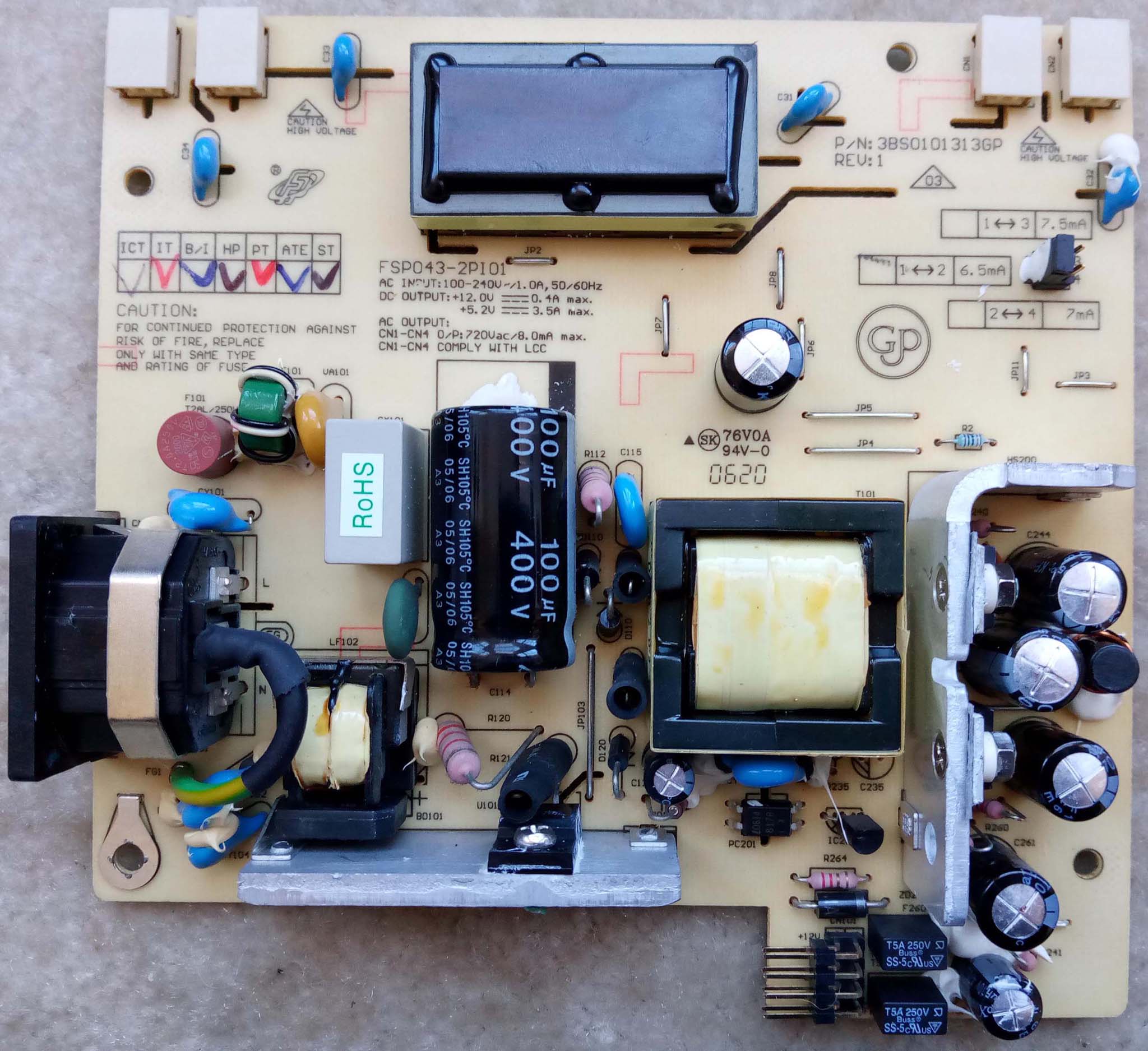 But if y’all think I’m done here, then clearly you haven’t read/seen any of my previous repairs. In particular, I have a bad OCD when it comes to fixing a design with poor cooling. Knowing how hot the FPS035-1Pi01ZT PSU board ran in the Wise Wing monitor, I certainly wasn’t going to leave the FPS043-2Pi01 in this monitor in its stock form – no sir/madam! (insert the opposite of the “nod” smilely here, which we don’t have. Hint, hint? )
