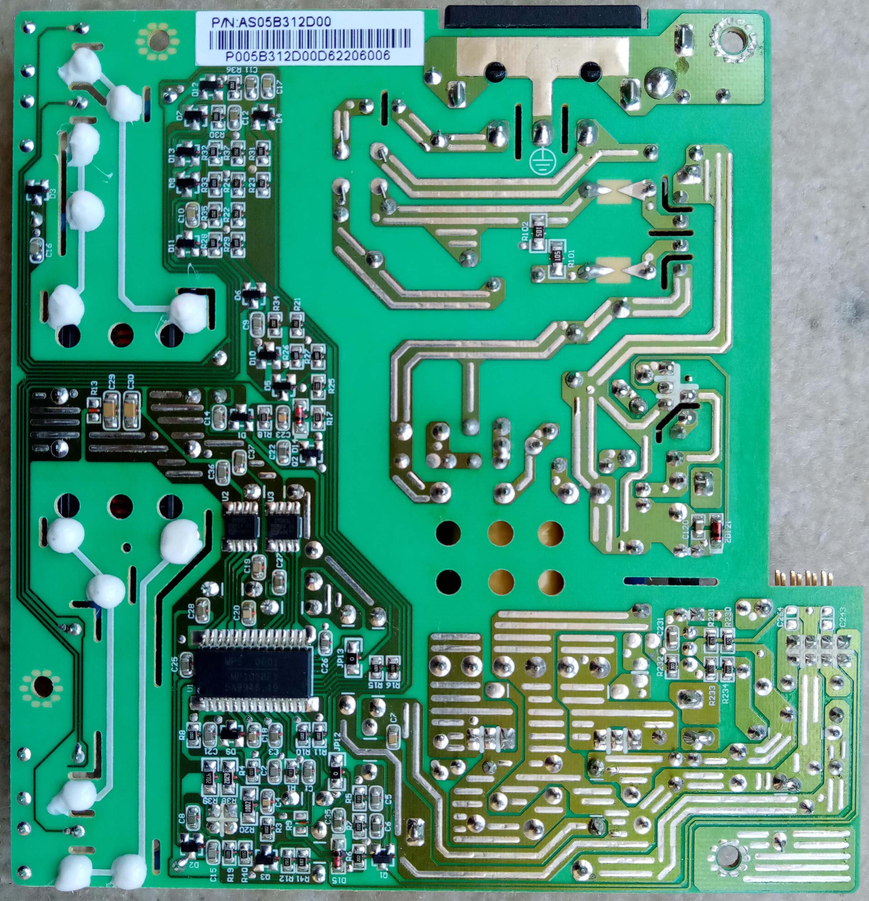 You can also see I replaced some of the jumpers in the inverter area with “tall” jumpers made of 14 AWG copper wire. Why? - Extra cooling for the inverter MOSFETs. I know this silly monitor worked fine for… what is it now? 16 years?... and the MOSFETs were OK without heatsinks. But nevertheless, I just dislike how hot these FSP PSU boards run. My OCD just won’t leave me at peace.