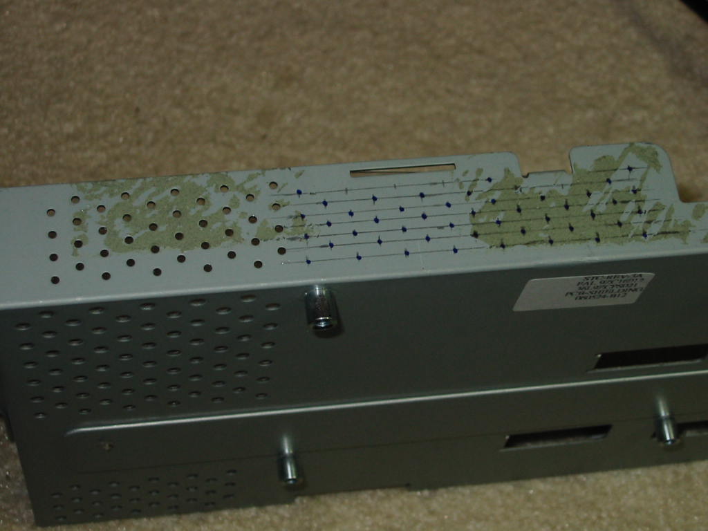 Again, the ventilation holes are tiny for whatever reason. To add insult to the injury, notice the sticky residue on the metal cover. This is leftover from where the aluminum shielding tape was put. It essentially covered most of the ventilation holes.