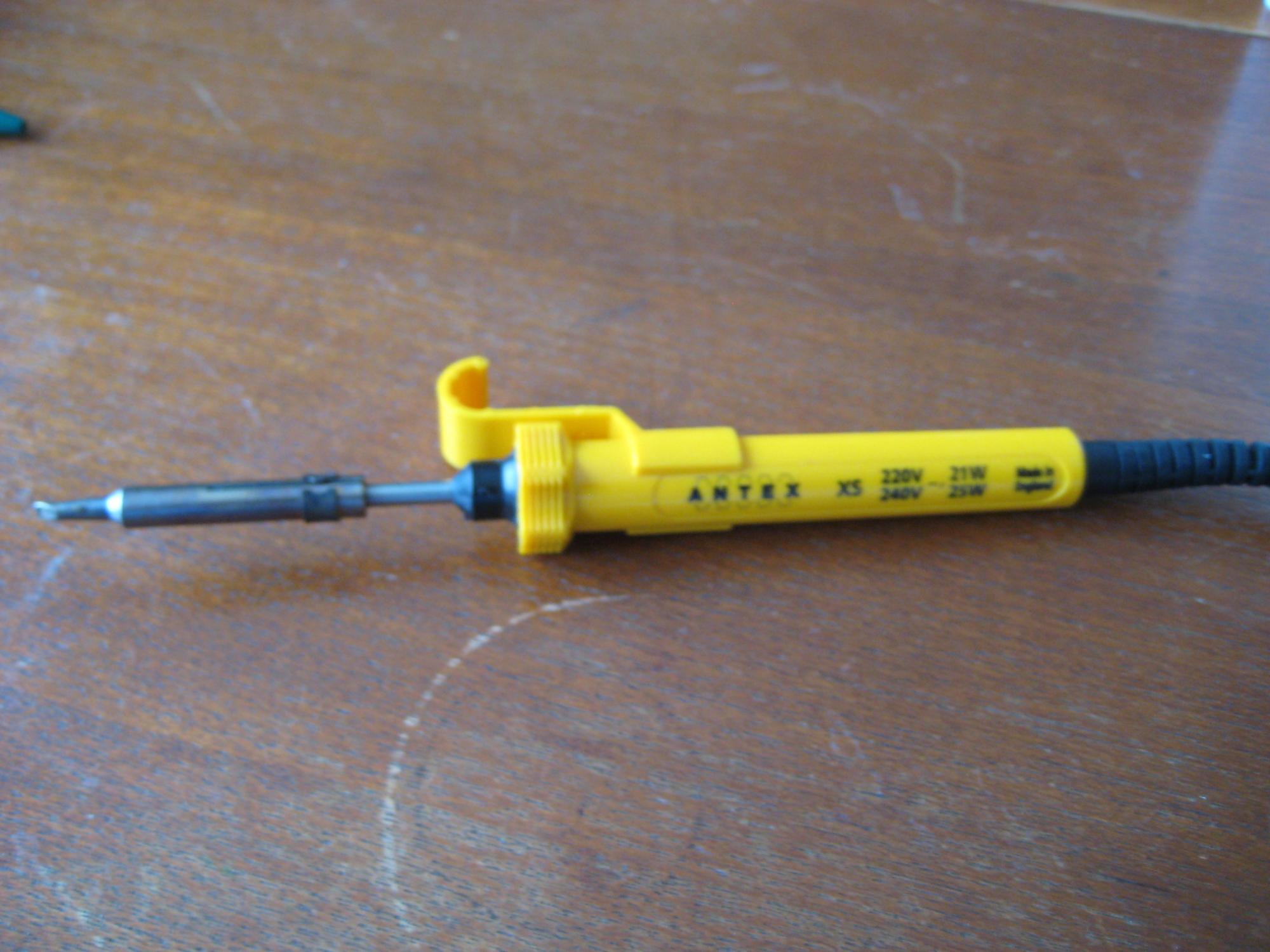 My son pointed out to me that we had a soldering iron. It is an Antex 25 Watts which I picked up for £5 from a local General DIY store not so long ago.