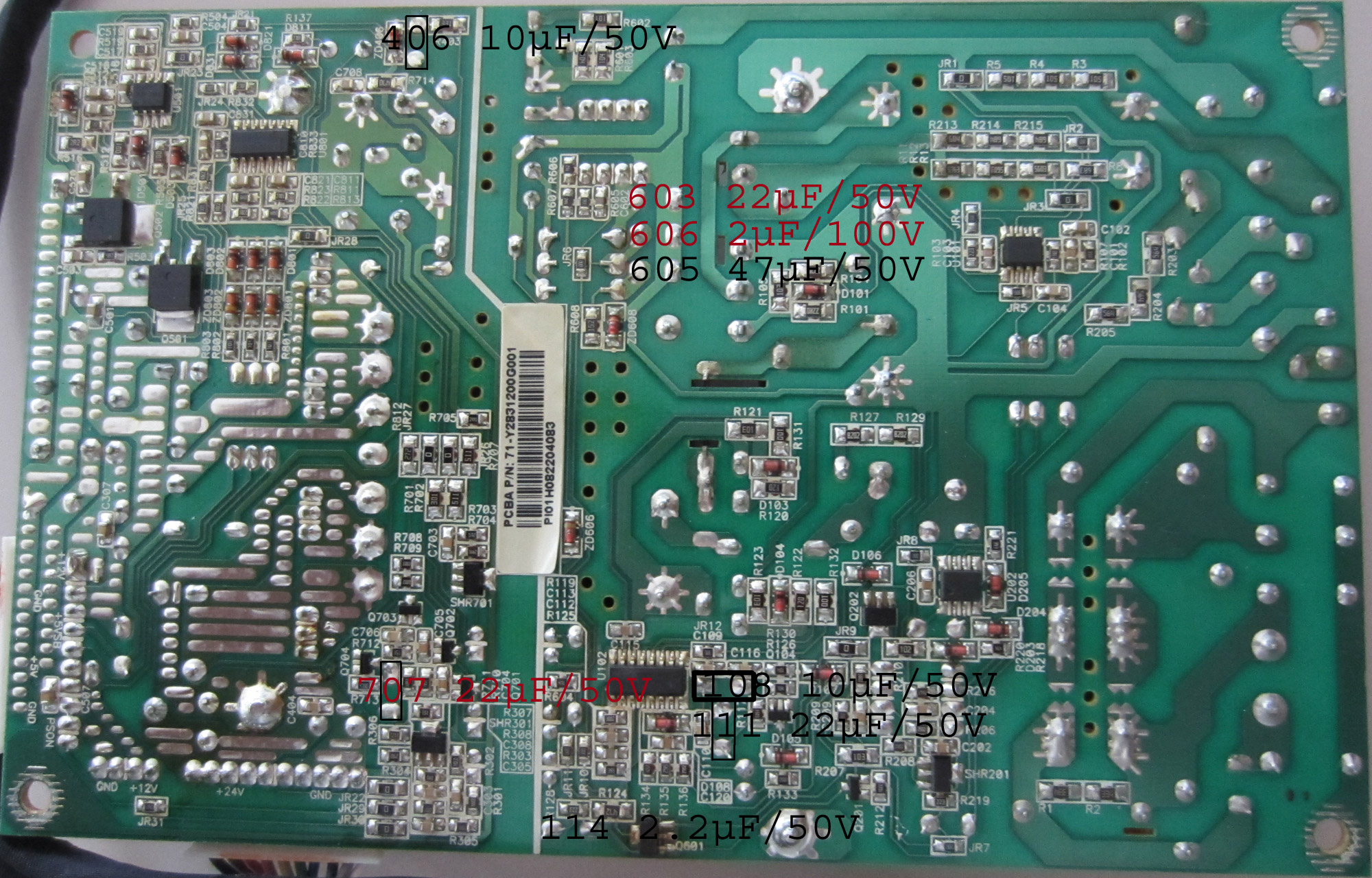 On the logic board all of the 10uf and 100uf capacitors are up in the 470uf and 580uf range. That should be significant enough to know those specific capacitors are bad, correct?