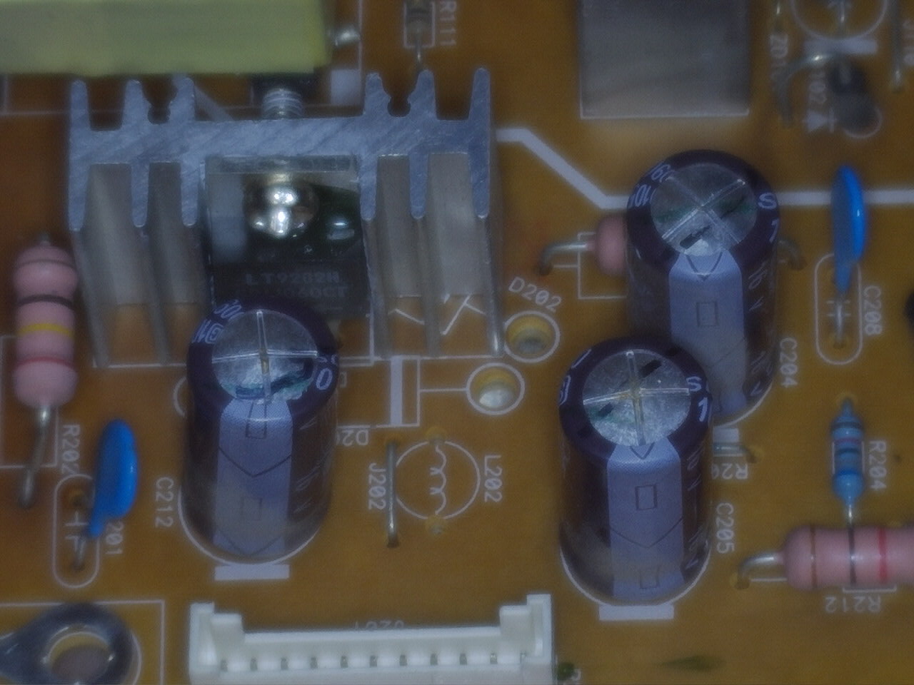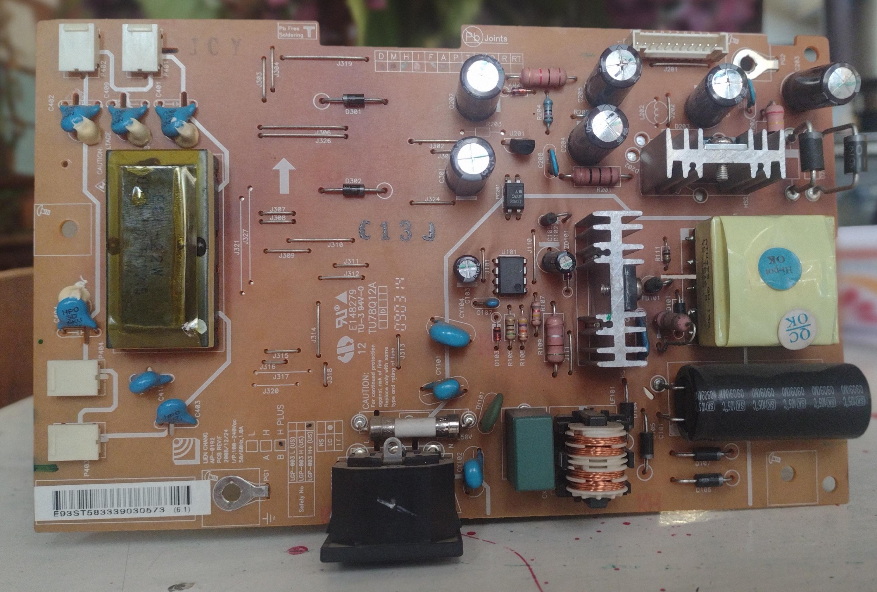 I have an LG Flatron W2353V that doesn't power on. It just stopped working from one day to the next. No lights, no nothing, and I don't know how to test the keypad since it doesn't have buttons, just a touch keypad. I took out the power supply board, and am attaching pictures. Some of the capacitors are bulged. I have a multimeter and have tested voltage at several places: