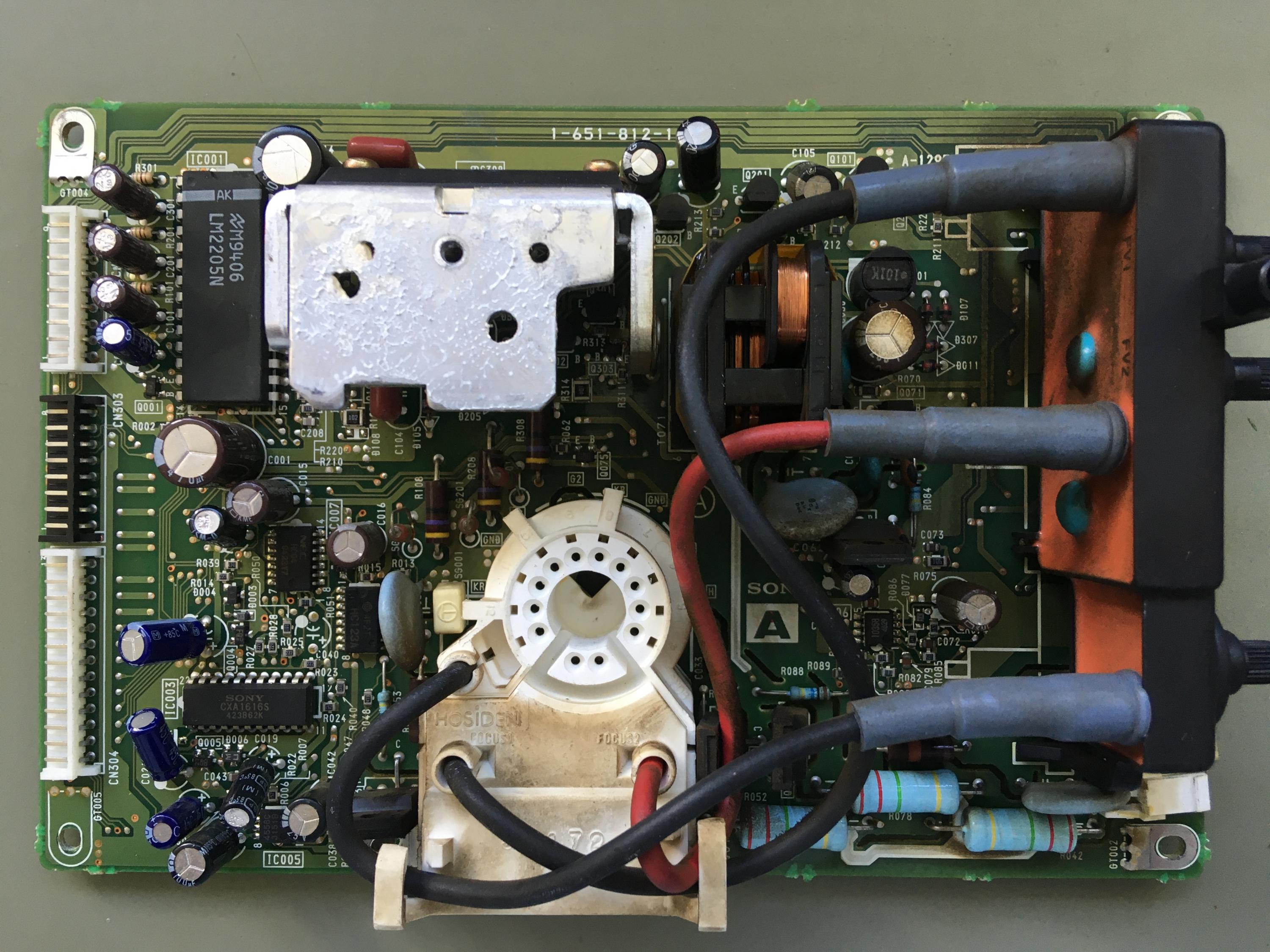 I checked the boards for any leaking caps and can't find anything. Everything looks pristine, with the exception of some dust, and the caps are not bulging. What are some things I can troubleshoot? Could it be the flyback transformer, or do you suspect a bad cap anyway? If I am to replace caps, which board should I start with?