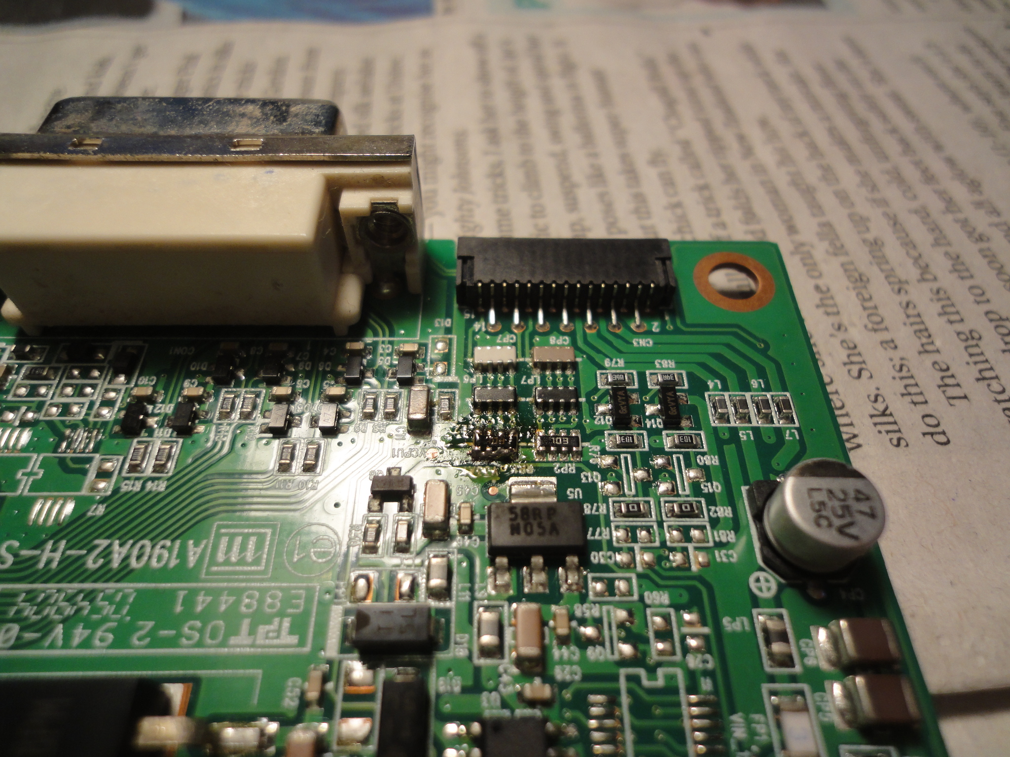 I figured this is time to look in depth at the button circuitry on the logic board. I tried to find a service manual for the monitor, but failed.