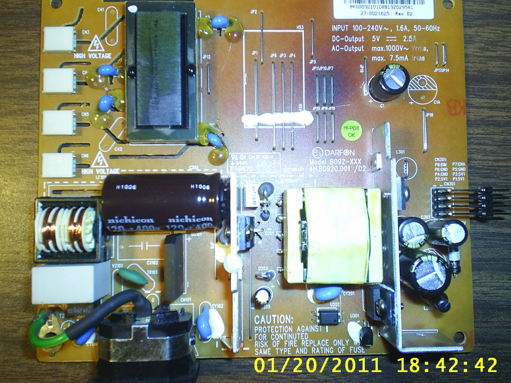 I also thank you all so much for the help. Juste replaced the five caps (following others topics here on the VX1962WM) and it's working like a charm. Even for a non electronic-savvy guy as myself (my last solder was like 10 years ago in high school), everything went perfectly fine.