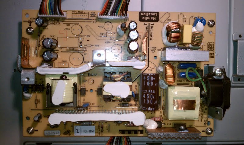 Hey guys, today I repaired my inverter board by soldering on the new caps. The monitor worked fine until i placed back the thin metal cover that covers the all the back boards. I must have by mistake hit something because the power supply stopped working. God I’m so pissed with myself for not being more careful. I tested the power supply while have all boards disconnected from still does not work. I checked for prices on power supplies and its $100. Dumb!... i was so close to get this thing back up and running. Any suggestions? Know of anyone that can repair these power supplies.