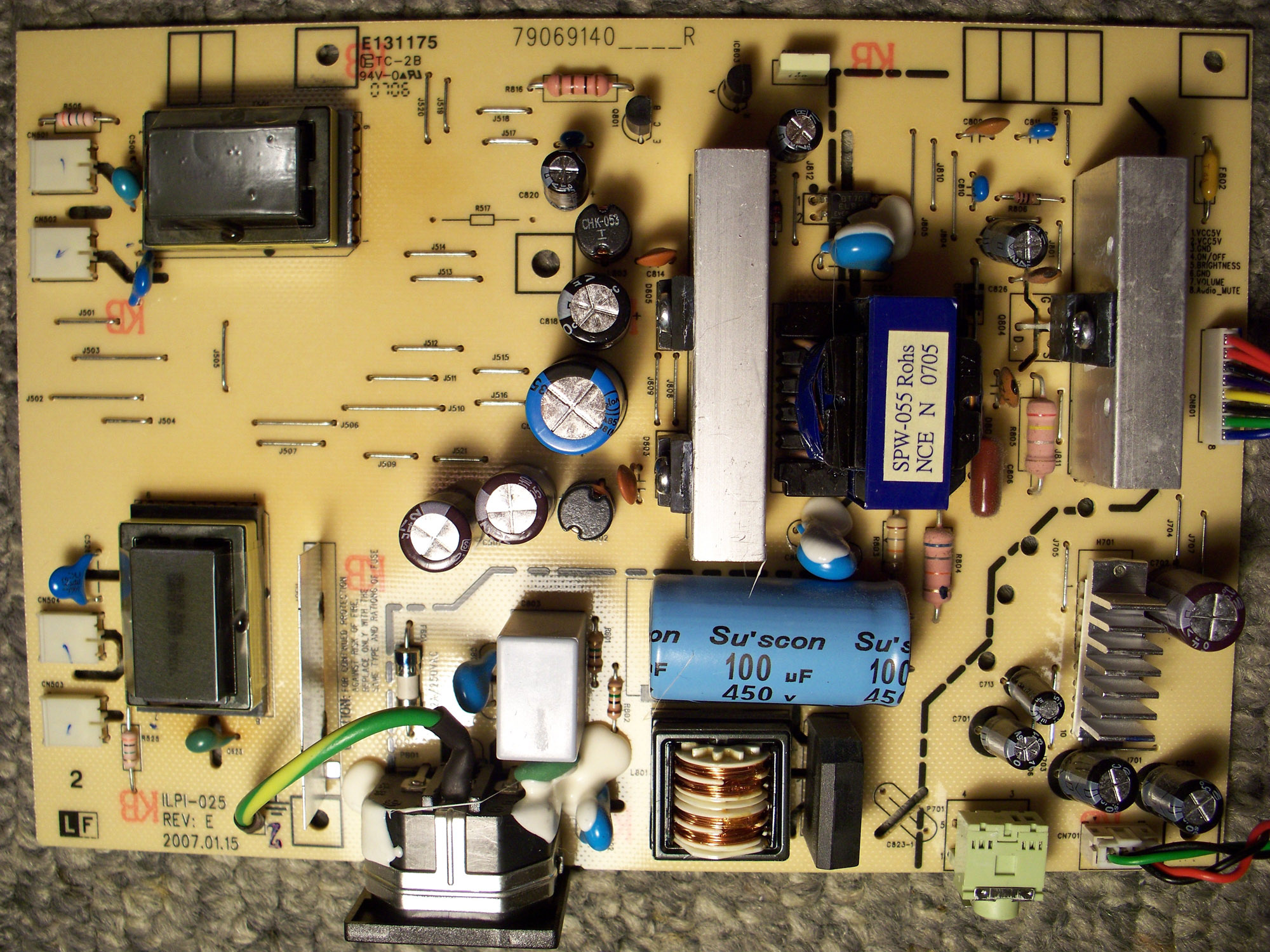 Hmmm... I'm looking at the logic board... In this case I would go and replace the primary and also the little capacitors on the logic board. The reason I didn't tell you to do it is because it's very easy to destroy it with the iron. But if you want to, use the same caps for them as you did with the PSU. Match them with the appropriate part.