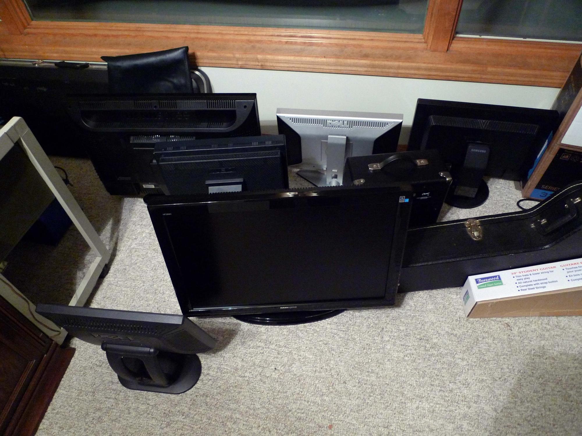 36 Monitors, 3 TVs, 4 Laptops, 1 motherboard, 1 Printer, 1 iMac, 2 hard drive docks and one IP Phone repaired so far....