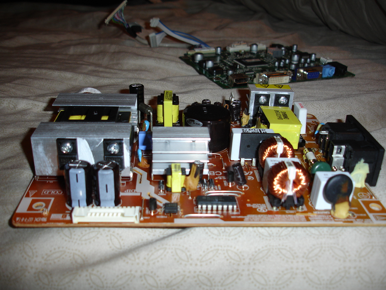 I recently got my hands on a model 2493HM. At first the power led would just blink blue and never show anything on the display. After opening the unit, i found a bad cap on the power board. I replaced it, but when i was reassembling the monitor i noticed a rattling sound coming from the logic board. It sounds like a small piece of metal is caught somewhere and is rolling around. I would normally not pay this any mind, but now i get a solid blue led and no display. Any suggestions?