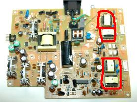 so our dell monitor pooped out a while ago, here's what i have done on it so far. Power light was flashing. Bought a replacement kit for 6 of the thingamabobers (black plastic front, metal plate on back, three prongs, labled: Q739, Q740, Q743, Q751, Q759, Q760). Lost interest, regained interest, plugged the monitor in to see where i was, and it started spewing a good amount of smoke. Replaced every one of the thingamabobers. Now it will turn on, and after ~1 second the backlights turn off (it is still on however). Checked all of the capacitors, none of them have bulged caps. Gave it a thorough look over, no visible smoke residue or bad looking solder connections.