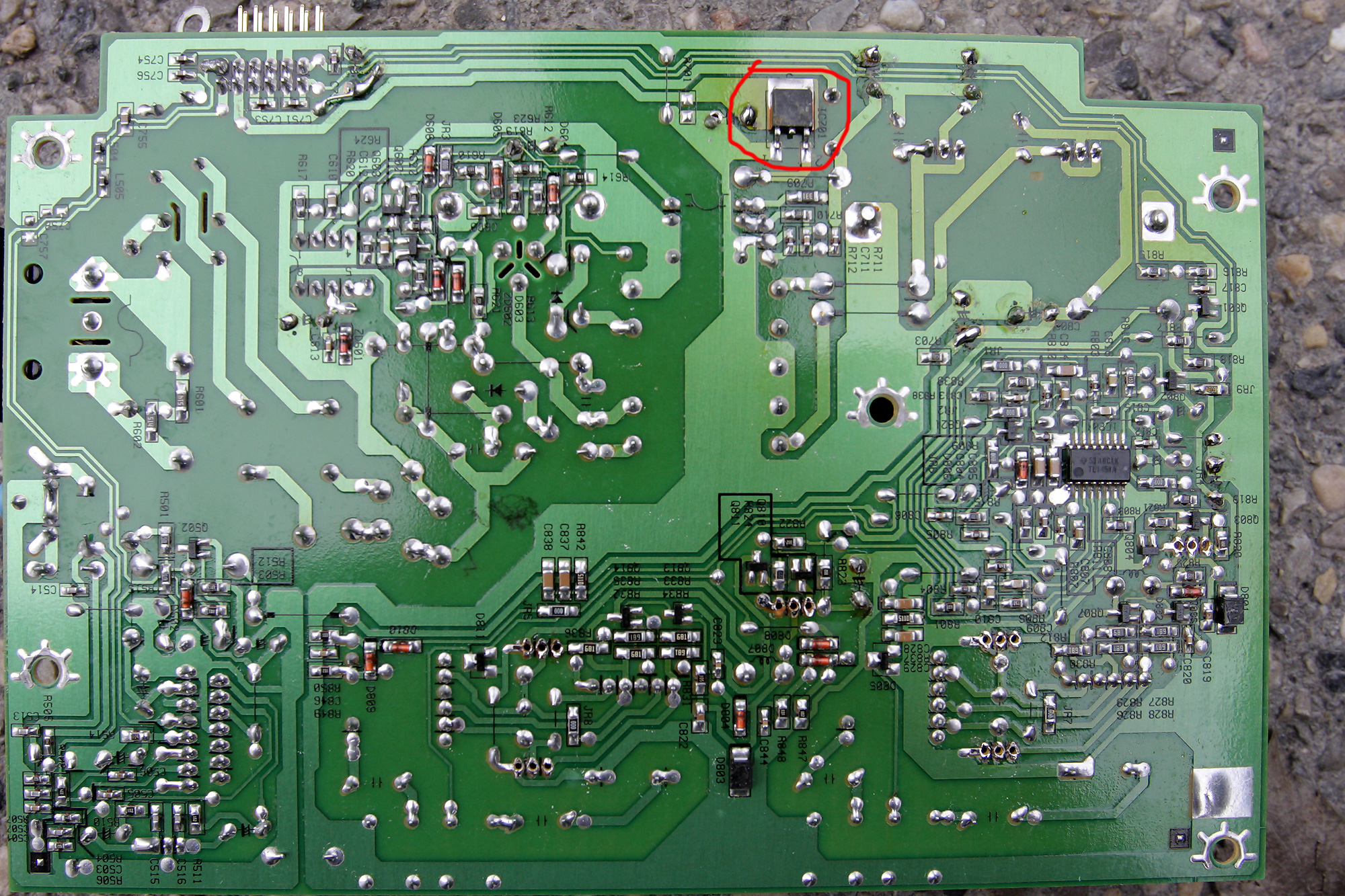 I figure something is killing the power supply, then I notice its the all too familiar C5707 transistors, and sure enough a couple are shorted.