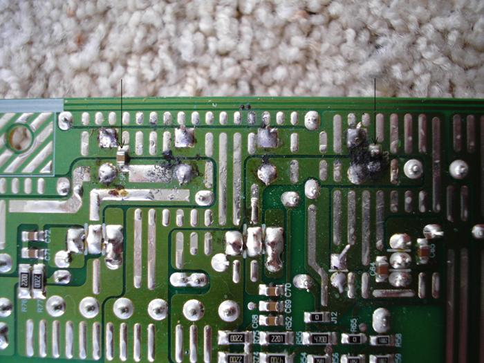 I put some new caps in because it was taking 20 minutes to boot. And it worked fine for 4-5 minutes before another capacitor smoked and blew. This is one of those tiny ones with no legs. Looks like 2 silver posts with plastic between them. I've enclosed a picture link with a couple arrows (one to a good one and one to the toast). Do you know what capacitor that is and if so is there some polarity for this style?