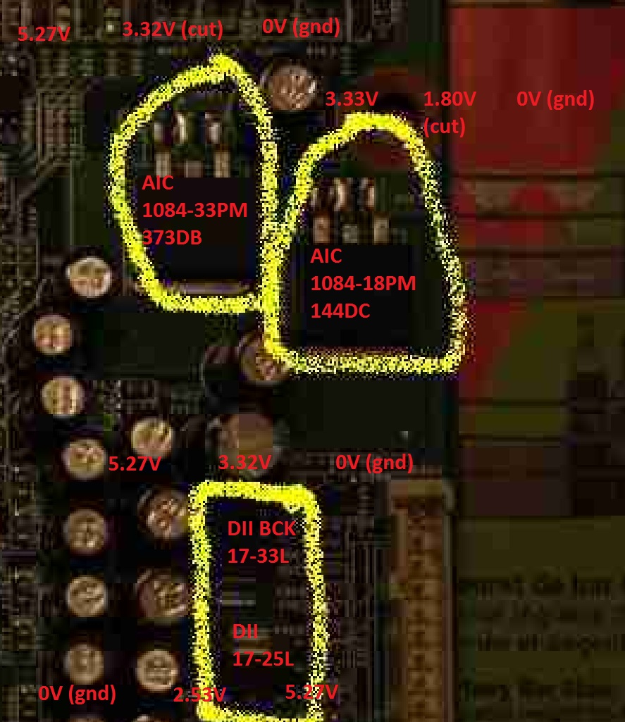 There are voltage regulators on the logic board. I have circled them in yellow.