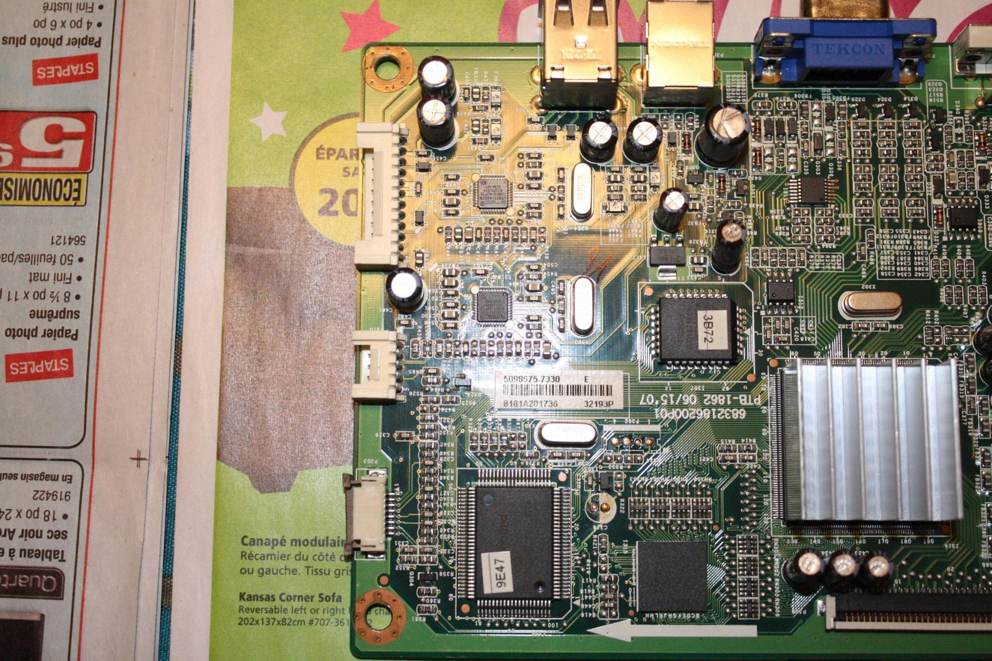 There is however a ticking noise from the T-Con board to the left side of the RT6811 chip when power on (not when off). Also the RT6811 chip gets quite hot (cannot be touched for long) otherwise there is no physical sign of damage and everything around the board is neatly covered with plastics and does not show any...