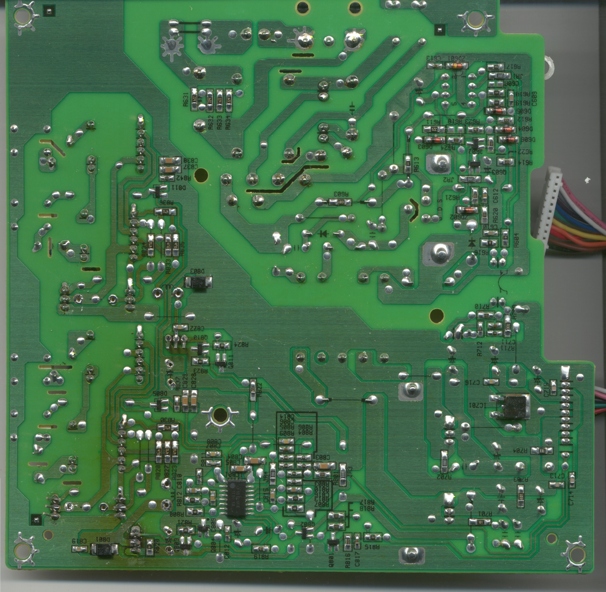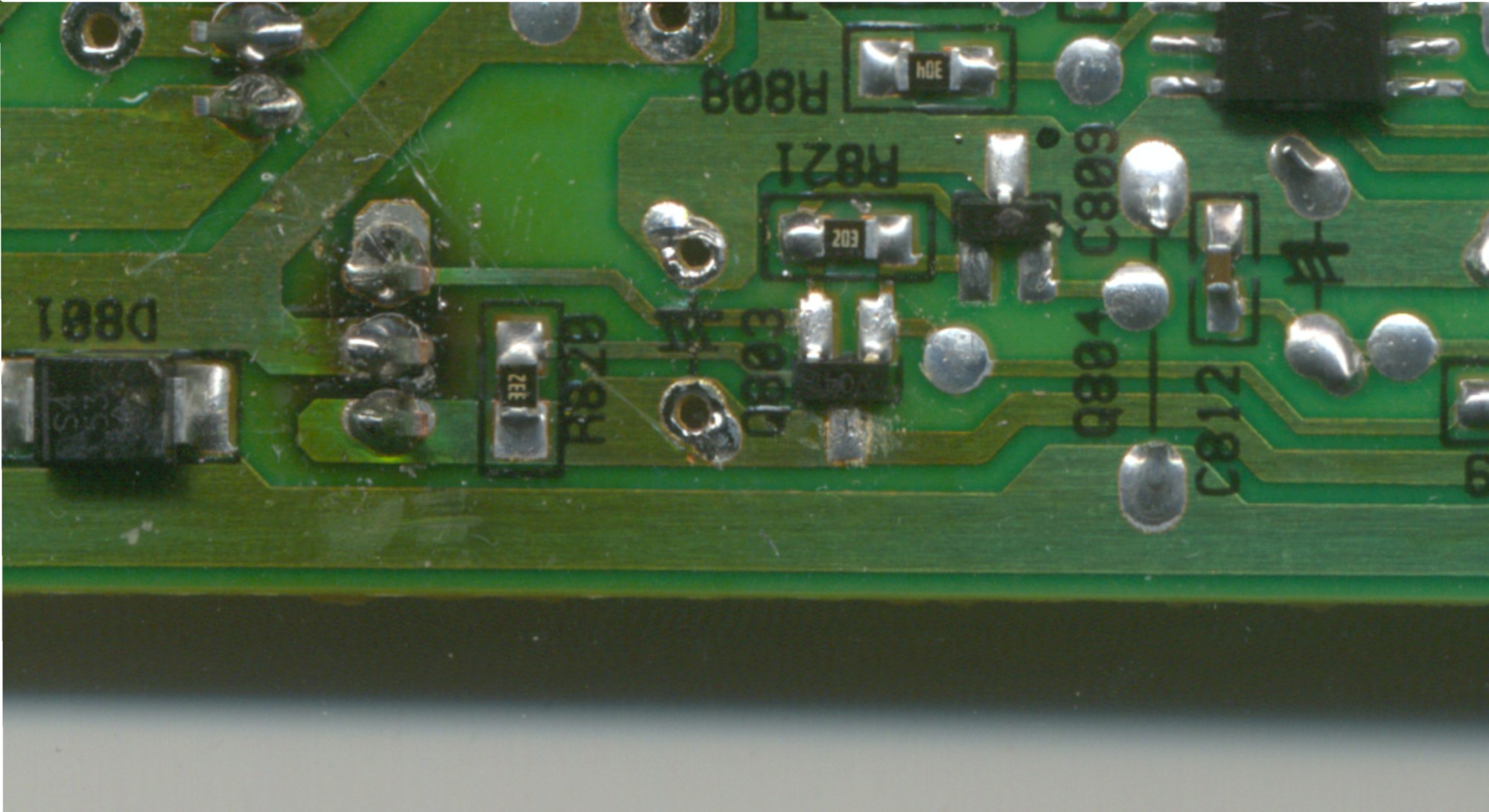 It is on this side of the board where the 2sc5707 and FU9024N also were defect. I have replaced them allready but not tested the board because when I was measuring on the two FU9024N I founded difference. So I examined the board further and discoverd the defective Q804 but .... I do not have further information on Q804.