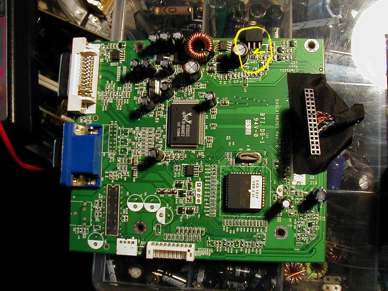 i also have a vx922 with fluctuating power from the 12v rail between boards. i have replaced all caps but the large 400v. still the power goes from 12v to 4v and repeats over and over. and the screen and green power light blink in time with it. what else could be the problem?