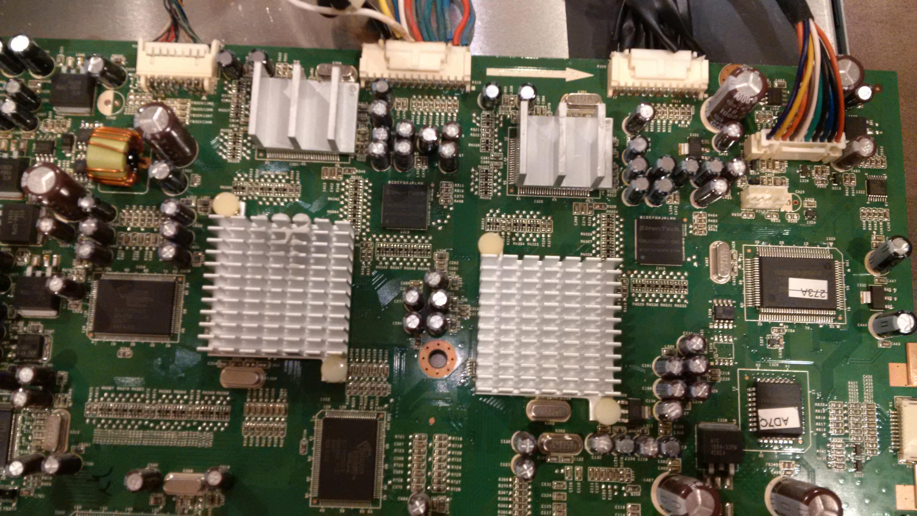 All the way to the power board now, I have the 4 screws on the back side and the 5 screws on the front side removed, and I can't seem to pull the board out. I'm hoping it's just sticky tape or thermal paste on the heatsink that's not letting me pull it up, and maybe I can try a hair dryer tomorrow to warm it up and get it to come off easier...?