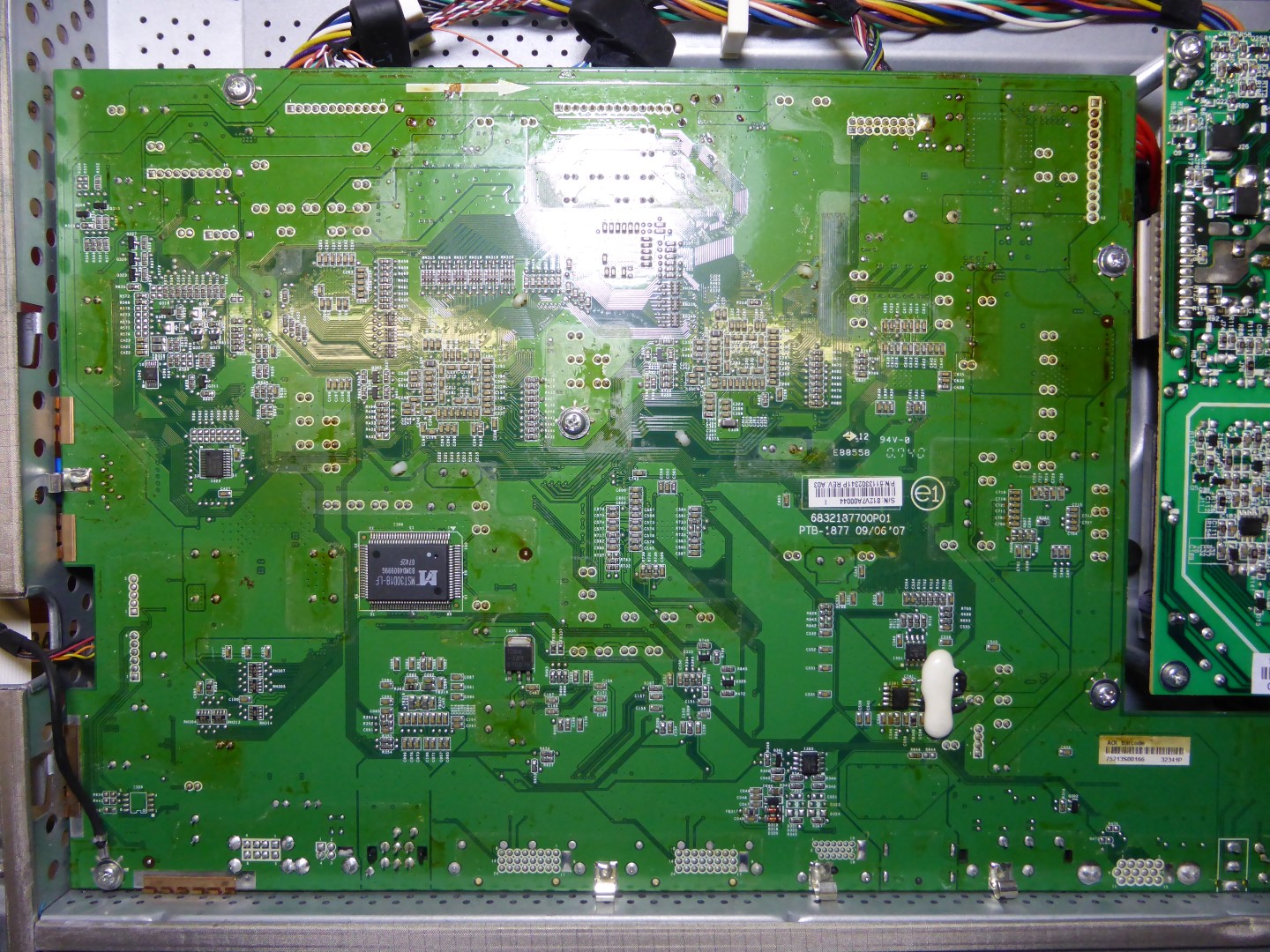 Since there's no schematic, I looked at the photos posted earlier. (If you can post photos of your own boards, top and bottom, with heatsink tops of PSU removed so we can see where things go...)