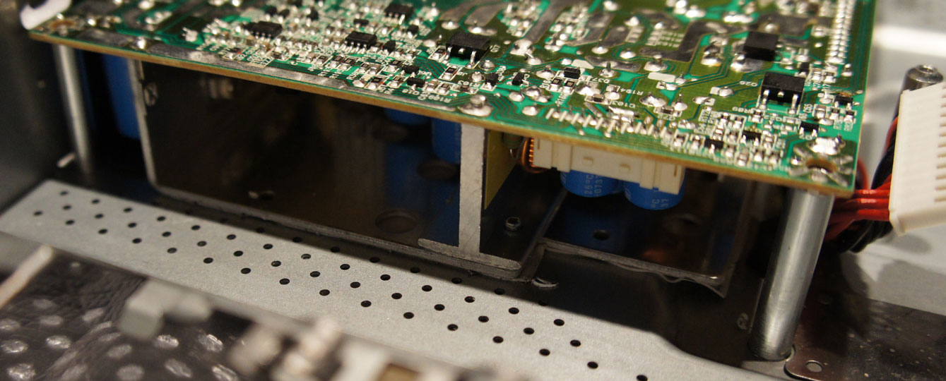 18. Remove tape and unplug these two connectors so that the main panel can now be lifted away and worked upon. The power supply board can now be removed once the 4 screws on the back of the metal panel and all screws holding the power supply PCB in place are removed.