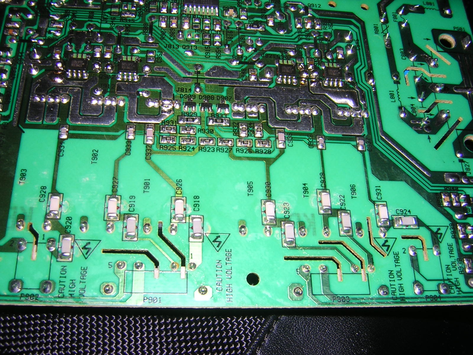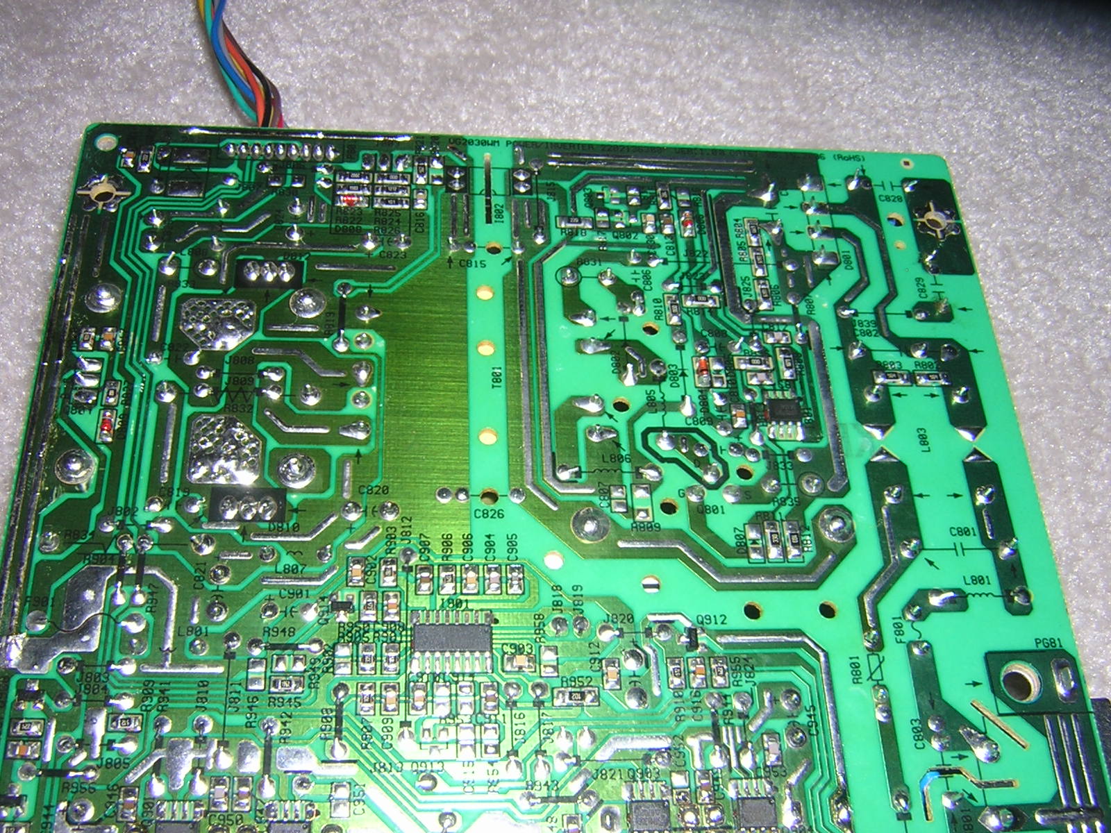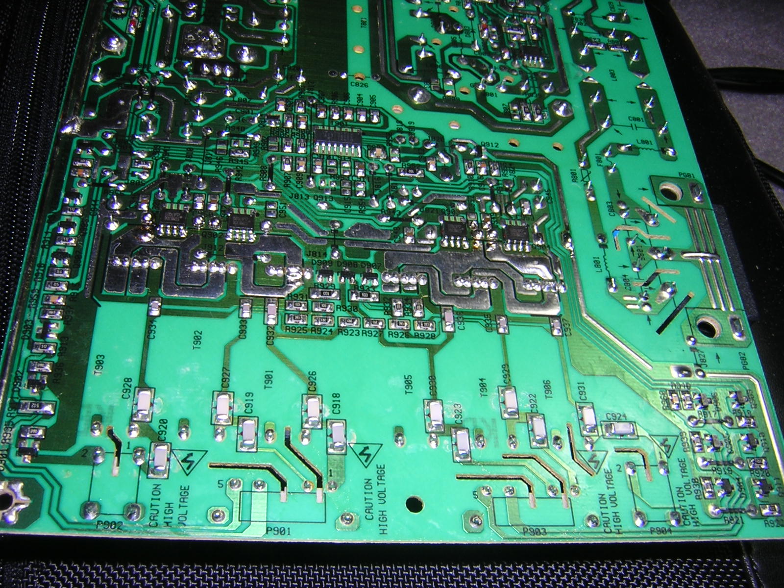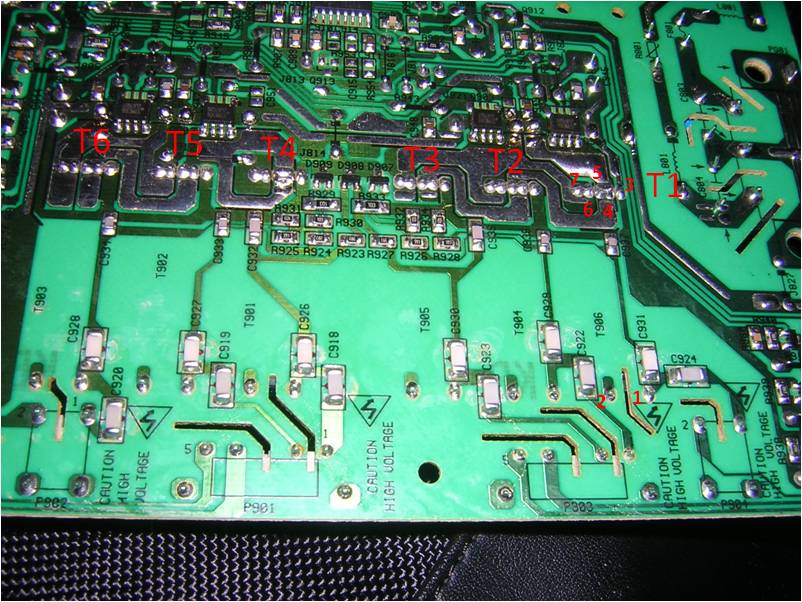 I am enclosing pics of the back of the board in the inverter area.....which is where i think the problem might be............or could be the caps.........have not checked those with a cap meter yet since i have to borrow one from a friend.