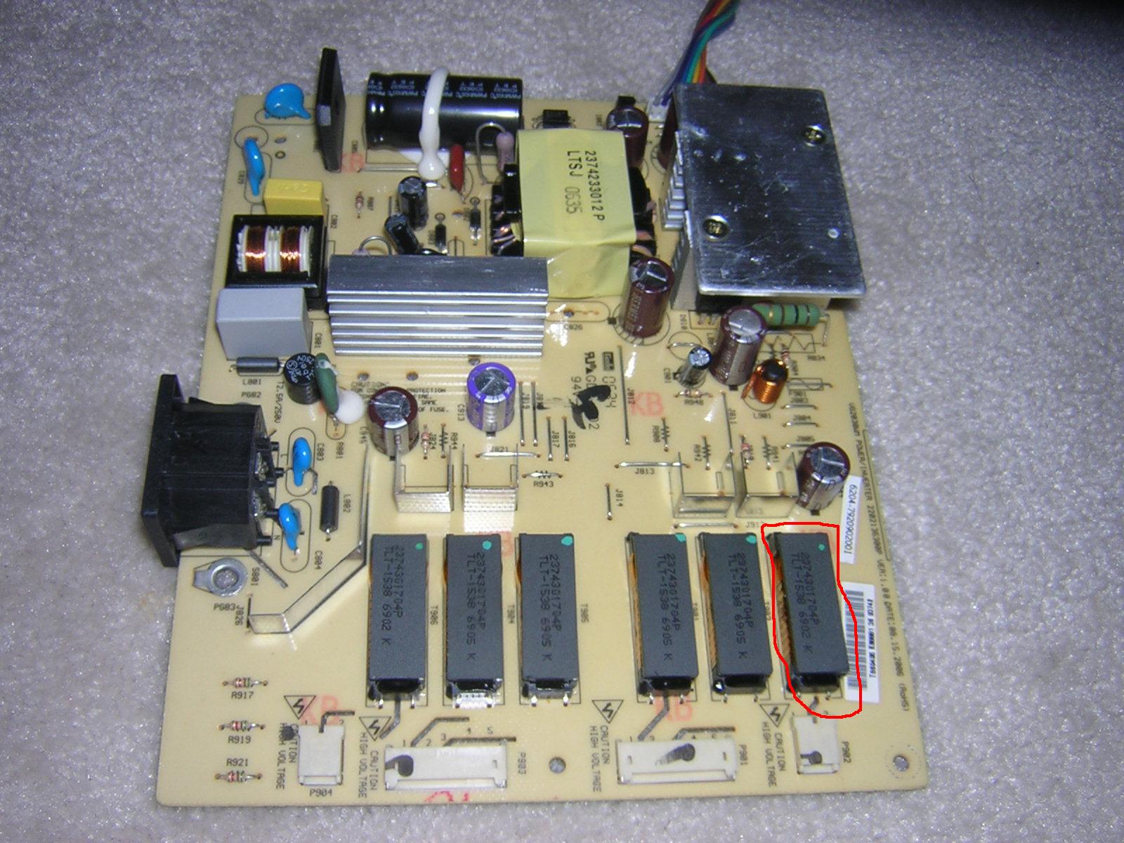 Similar setup to the Samsung 215 had one that would come on then go off turned out to be 1 transformer ( top one )