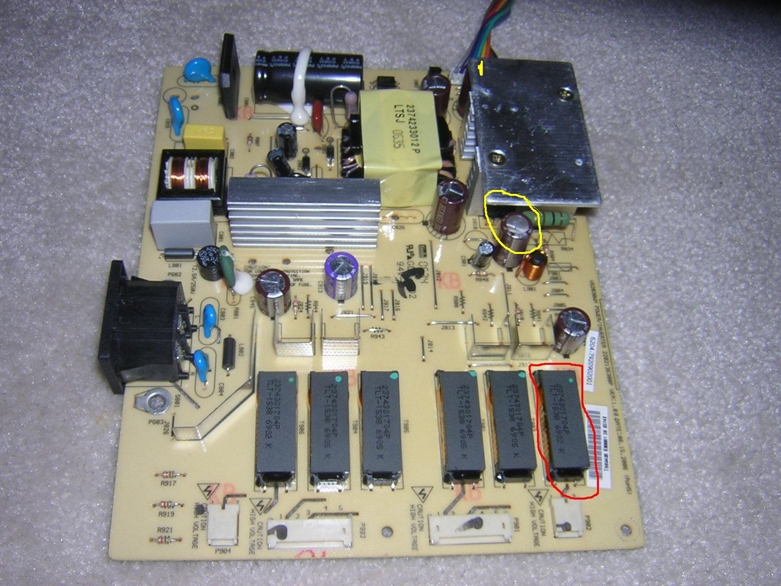I replaced a bulged cap on the main board, but made no difference. I also got another exact same model monitor that has a broken ccfl (the connector got ripped from the panel and the main screen connector is also broken so I can't use this panel to test), tried using the main board from this one, same issue....