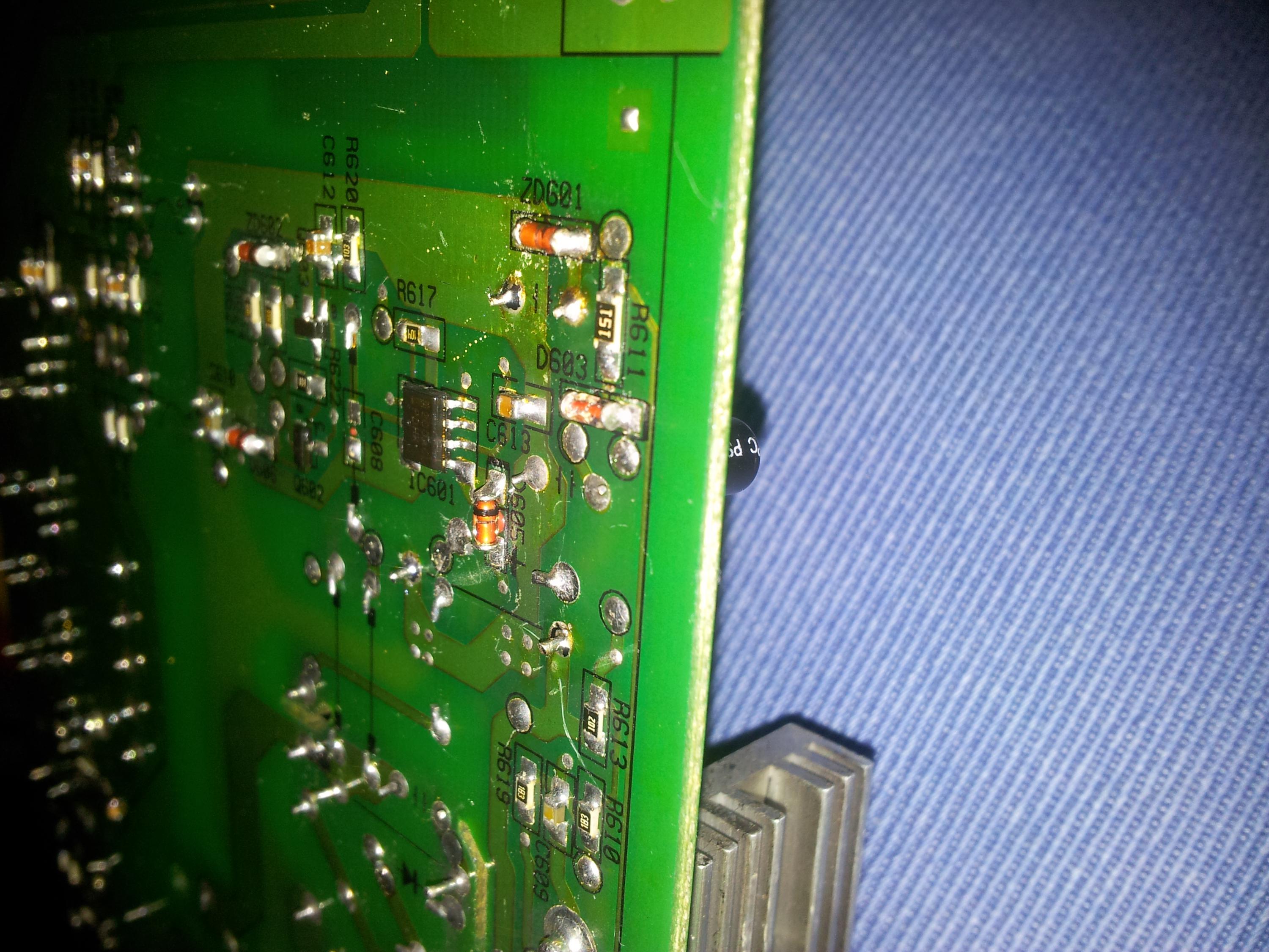 I'd never de-soldered/soldered surface mount components before, so I practiced for a while using a dead board. I found I had to be careful when de-soldering ICs and SMT transistors to avoid tearing off the contact pads.Comment