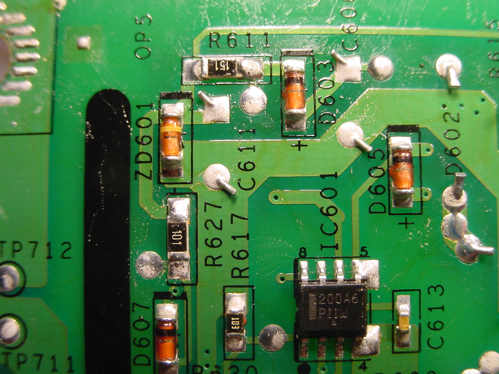 I also have a 2405 with a failed C605 and all the company of MOSFET and IC that it brought down. In this thread it was mentioned only ZD601 (15V). Even if the remaining Zeners should not be affected by the cap failure, I measured ZD602 and ZD603. Both are 24V, if anybody wanted to know.