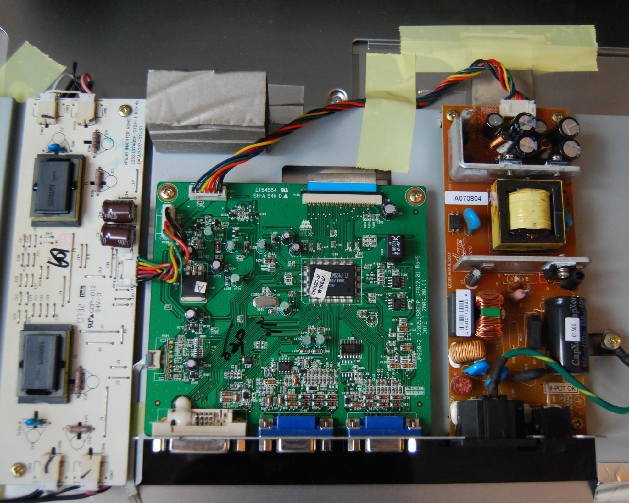 I am looking for advice on how to diagnose and fix..I suspect caps on inverter? Looking at PSU board, logic board and inverter board, no obviously bad caps (no swelling), but I do not have test equipment to determine, other than cheapo multimeter..