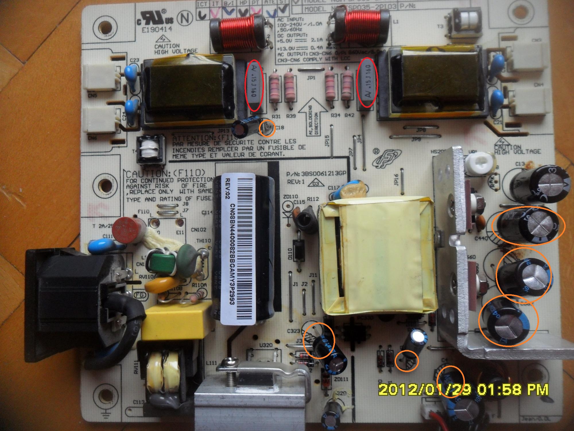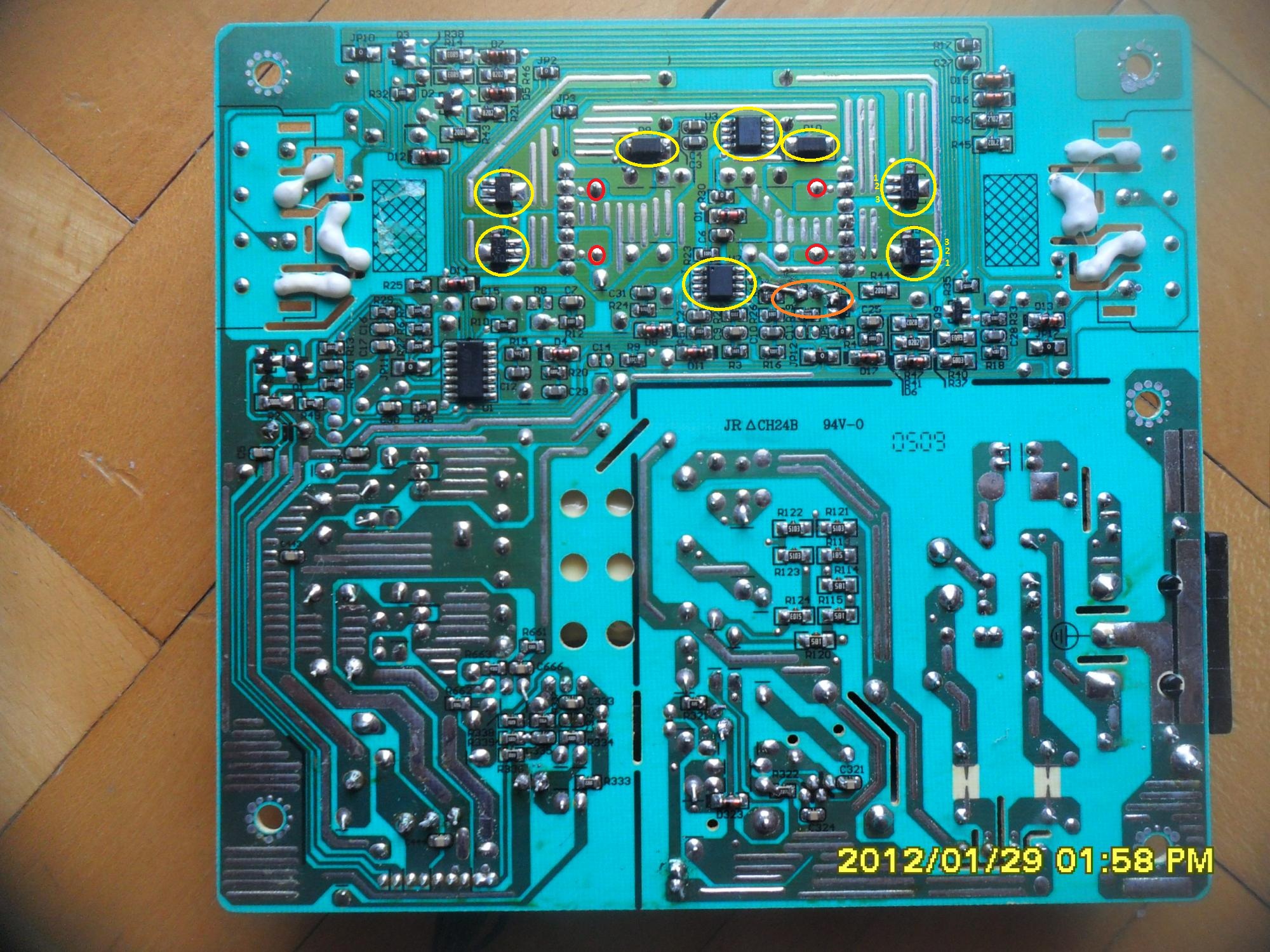 When I first opened LCD I changed all the capacitors. All capacitors on the board are new. Just when I went to buy them , store was limited and I didn't have much choice so I bought two brands , KSC and Jamicon.
