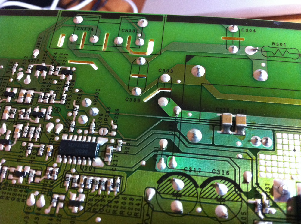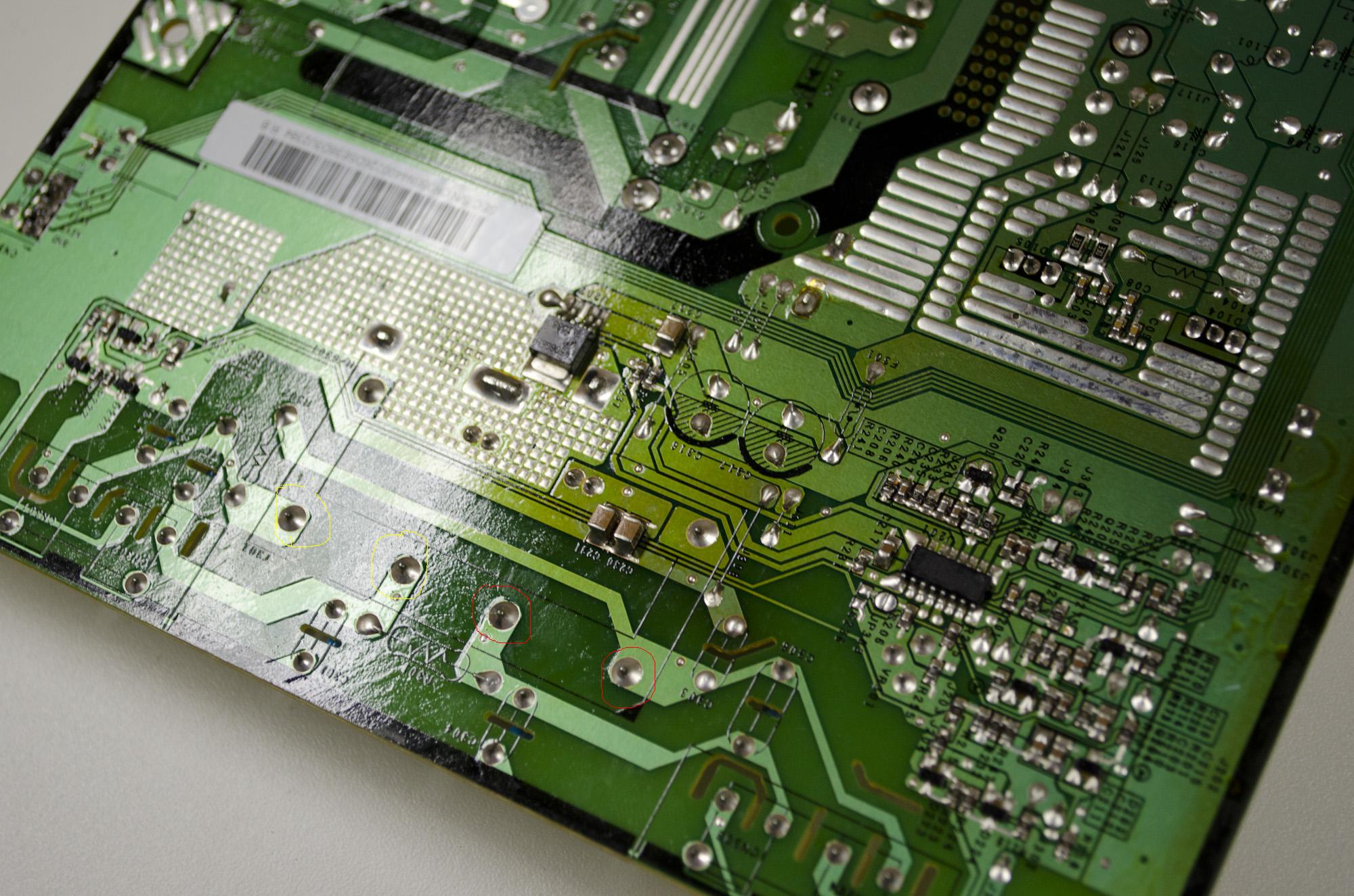 - Slight browning of the PCB’s underside (trace side), though nothing looking too drastic