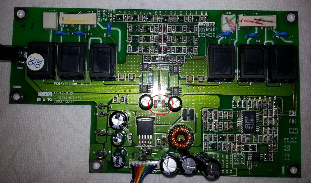 That is the Power board .. The red circle is where I replaced 2 of the three.