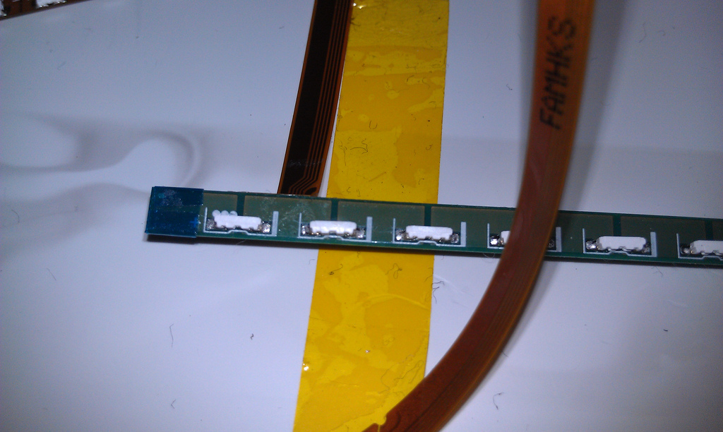 Basically, I scavenged about 5 different LED backlight strips from a slew of old LED backlit Laptop LCDs that have come through my shop. Connection wise, they all seem to have the roughly the same layout in common which is approx 54 LEDs, 3 pins combined into ground (or I think it's ground judging by the layout) and 3 pins that travel the length of the board, however after about 2 hours probing with a dmm, I'm still no closer to figuring out the layout and how I can power them without a complicated driver board.