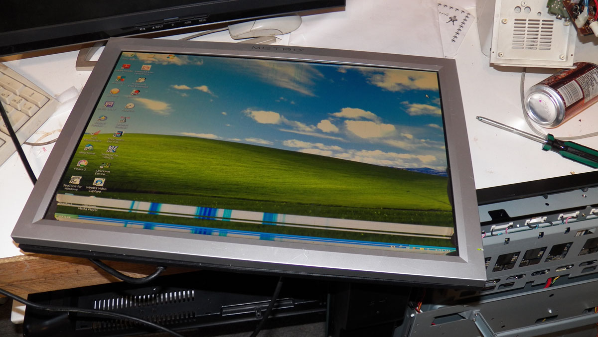 Hello all.. this is an offbrand LCD monitor made by Metro. Original symptom is 2sec to black issue. You can see the WIndows XP screen no problem before it goes away.