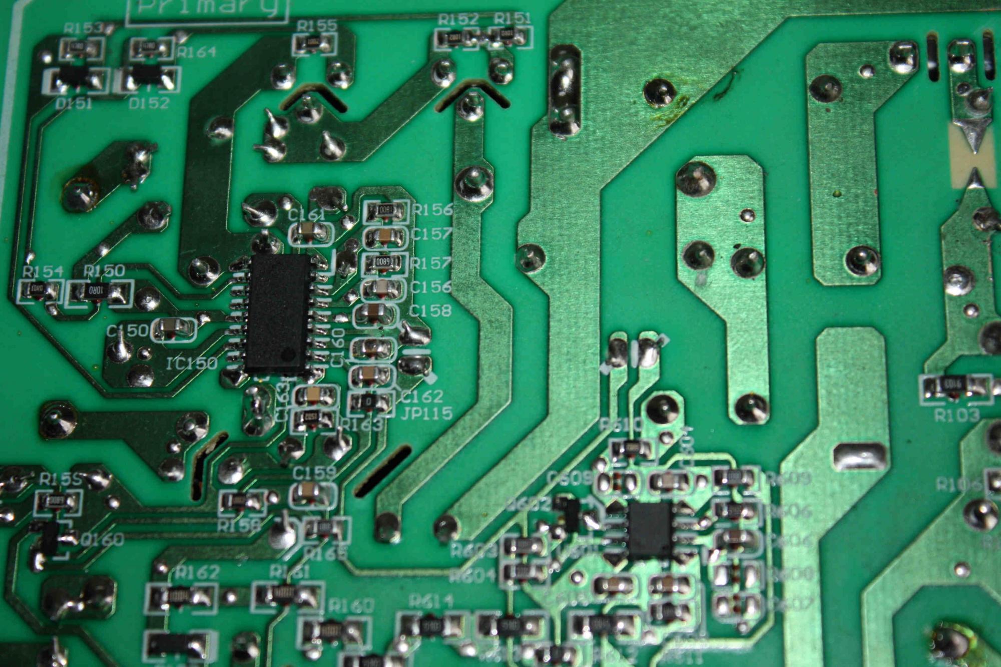 The two chips in the last pic are as follows: Q150 and Q151 with P4nk602fp ST. There are two more chips along the heat sink wall across from the heat sink with the grated top. They are: U700(STR, w 6252, 0311E). And Q601 with( P10NK602, GE 146) I hope this helps.