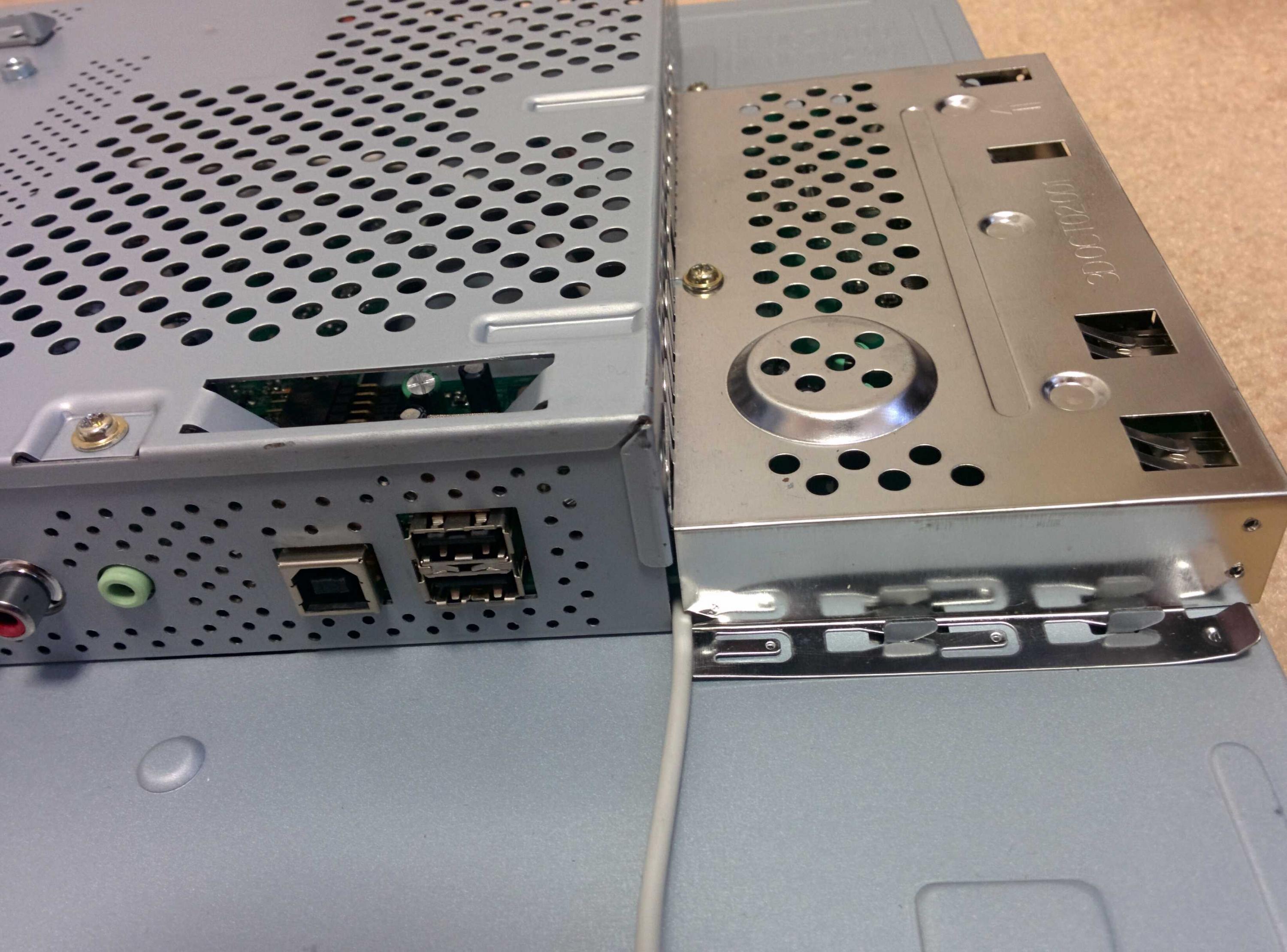 • Cut made in right protective stainless steel cover and also screen back cover to allow access for USB cable