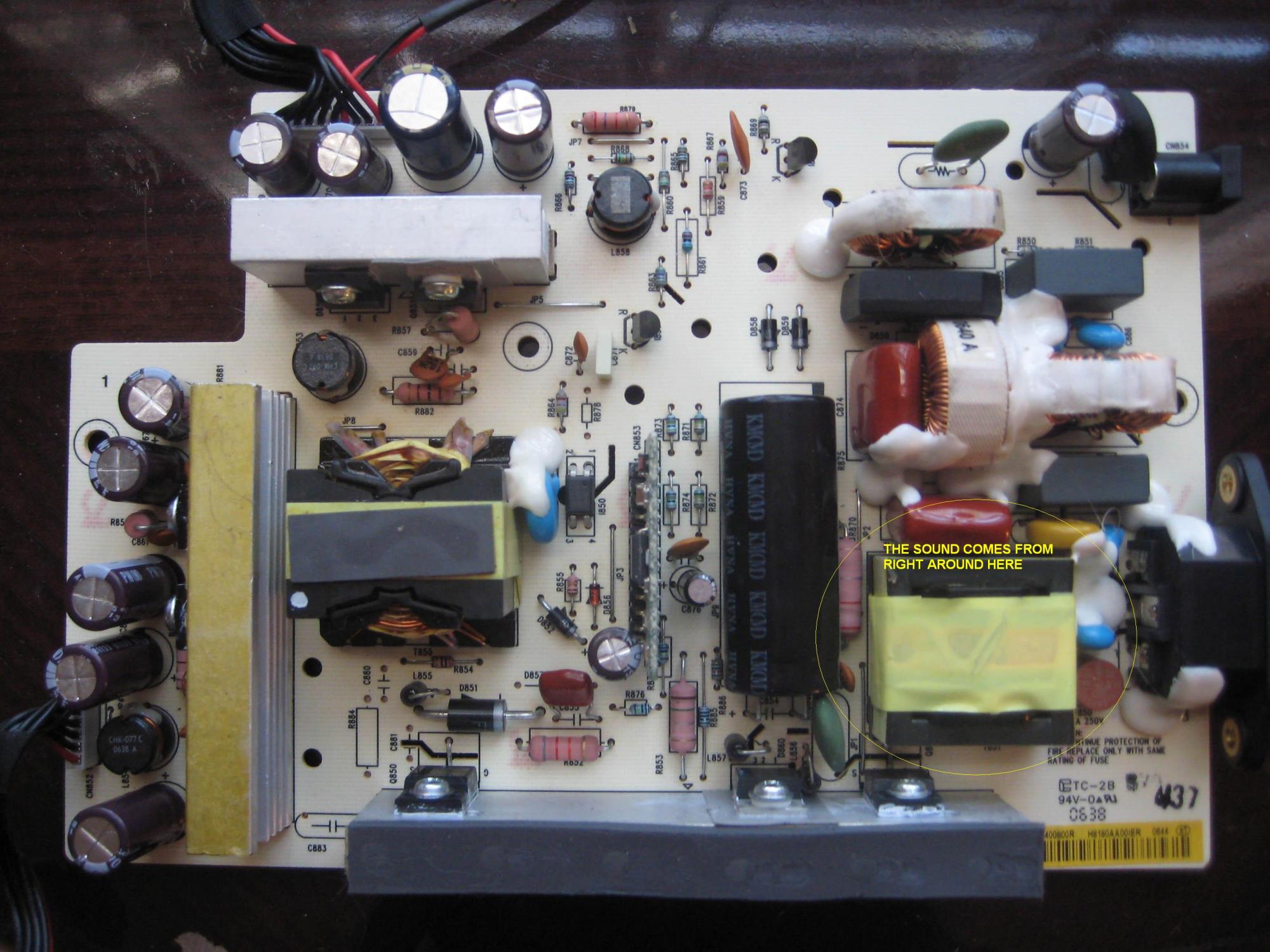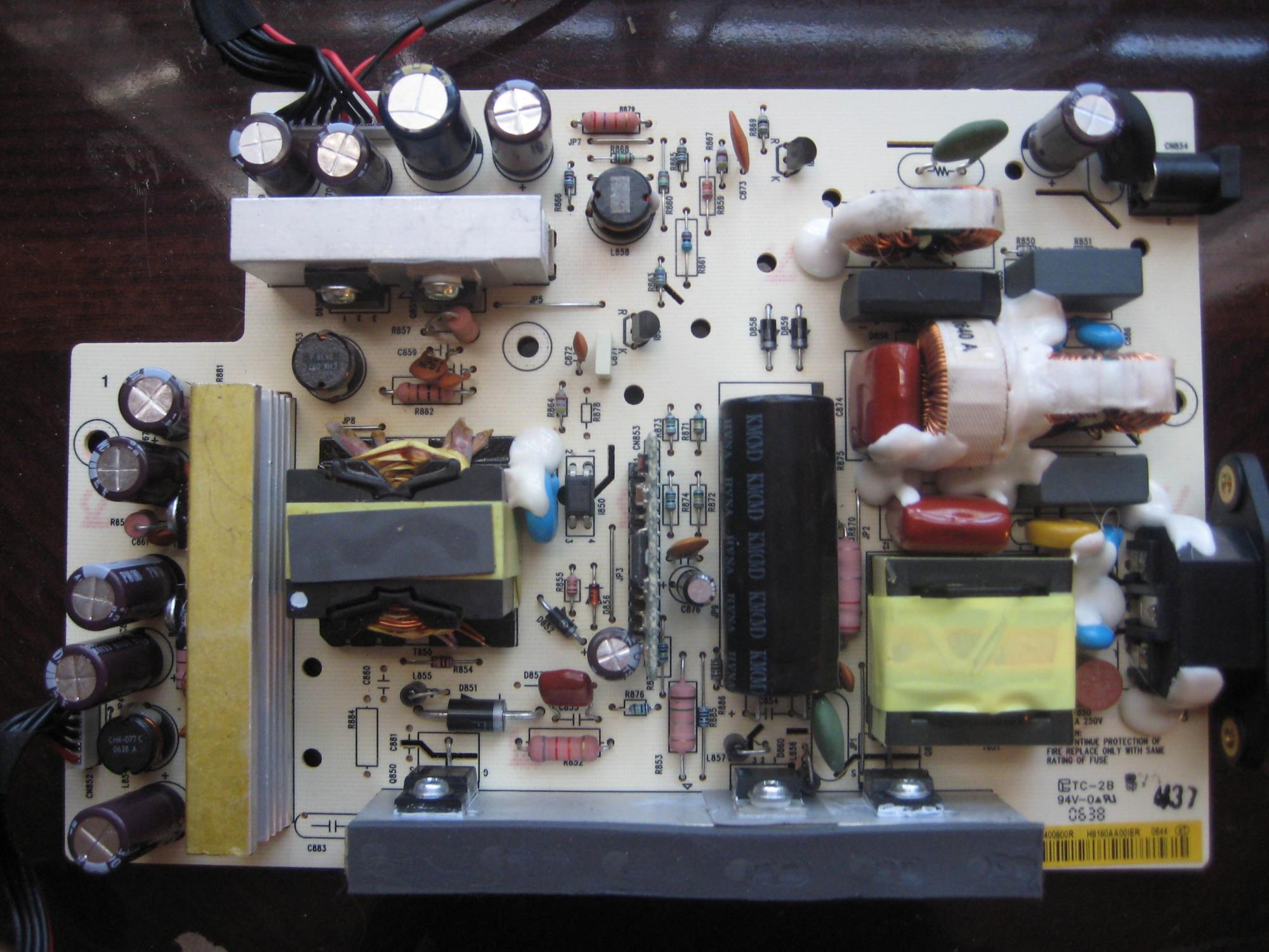 Still, no signs of life from the display, save for the sound of the power board powering up when plugged in. There are no bulging caps anywhere else.