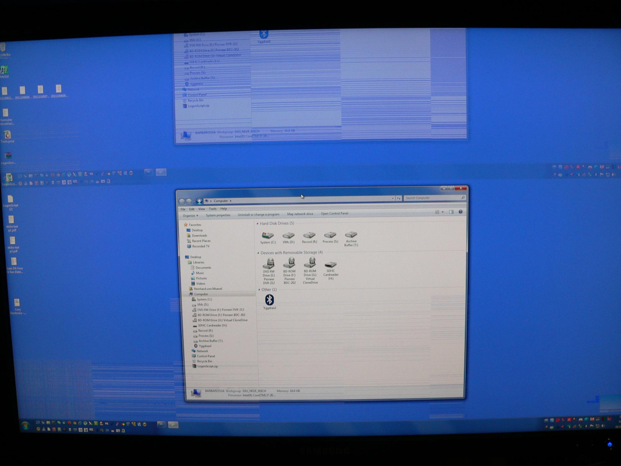) The top third of the screen shows the bottom part again, in a transparent flickering way, and added are flickering thin multicolored lines. The lines happen on bad cables too so I replaced mine, to no avail. Also tried different gfx card, no joy.