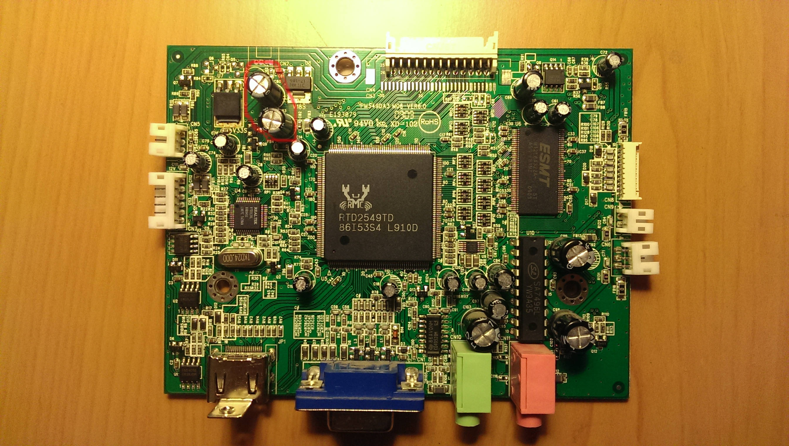 Recently, I got the captioned monitor and the owner said it could not be turned on. I open it up and found that one of the SMT capacitors seemed to be bad. I replaced it as well as the other one. The monitor still could not be turned on.