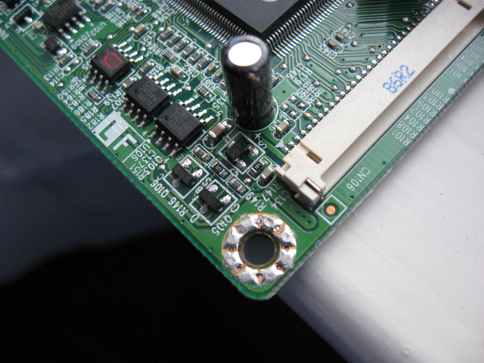 Normally these Boards give very little trouble,and most problems are caused by failure of either the wiring or the Backlights at the top of the Screen.Did you eliminate these as the problem,before re-soldering erc ???