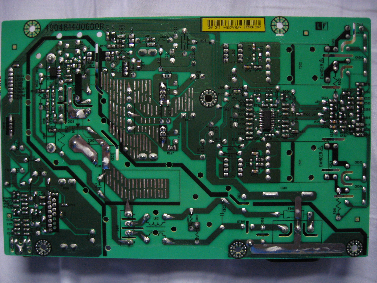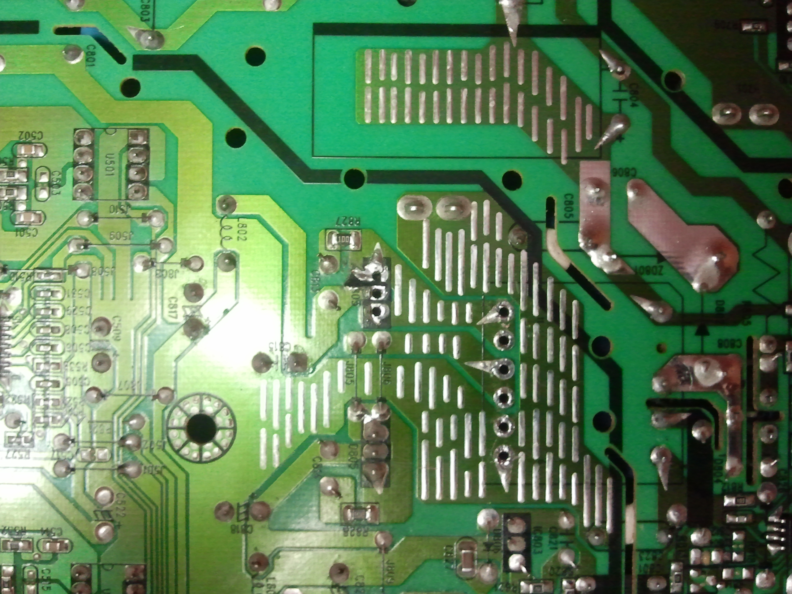 It had the 2 sec to black problem and by looking into the the forum descriptions, i've decided to have a go and try to repair it. I did check all the solderings and resolder all of them. The problem happened when it tried to get it running again. It started to make strange noises through the speakers and when i looked at it it was almost burning from a Schottky barrier rectifier, the D803 on the board. I've tried to find the cause but my electronics skills are few and i can't figure where to look for . At the beginning i though it was a transformer just before that part of the circuit, but i can't find the schematics for it. Hope you guys can enlighten me as for where to search or how to proceed.