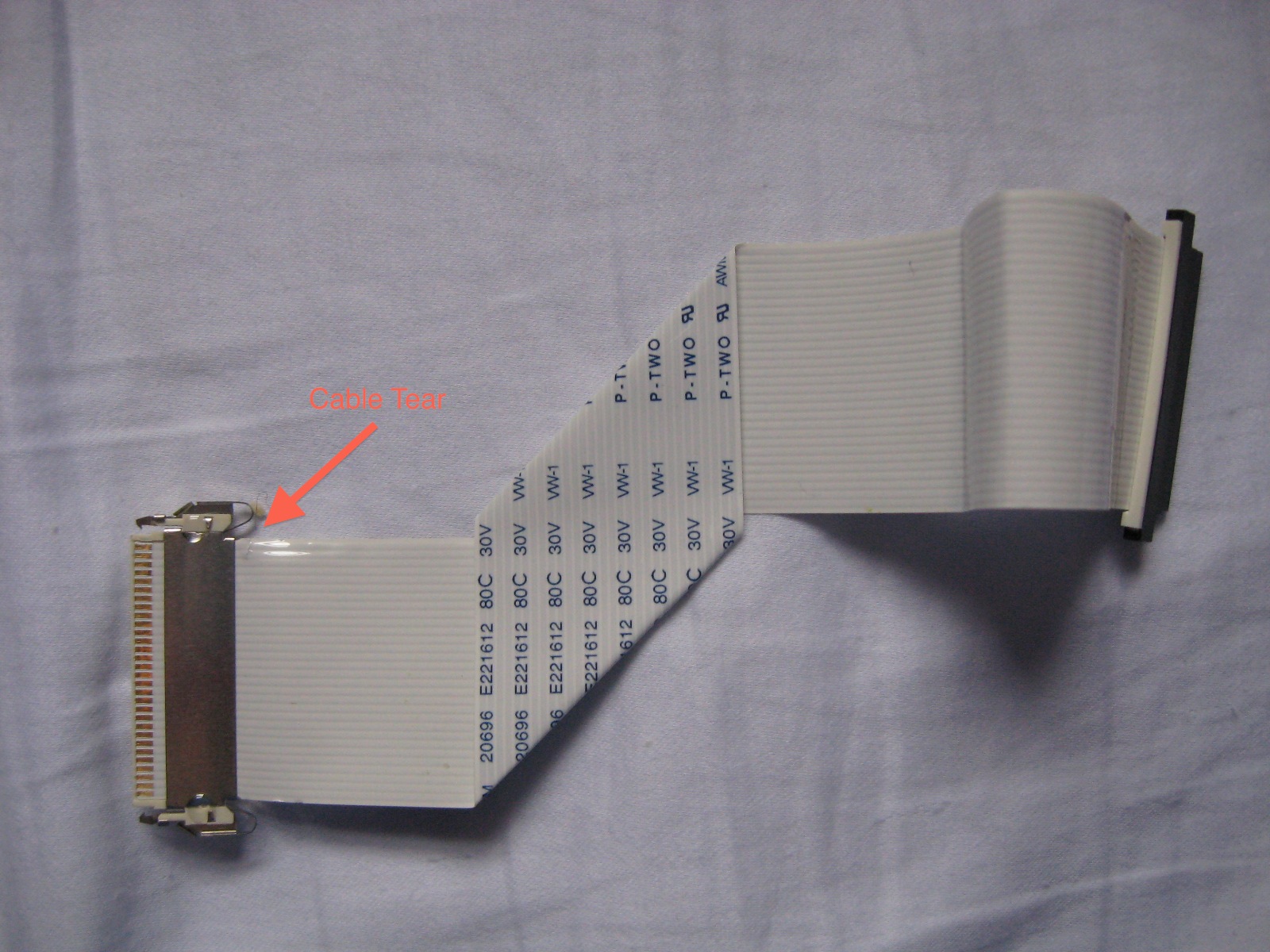 I picked up an HP w1907 LCD display with the 2 second to black problem at my local Goodwill outlet store. Took it apart looking for bad caps but found no obvious problems. Tested the monitor again and found an all white screen. Playing around with it, I discovered that reversing the top two CCFLs make the backlight work until power save mode kicked in. Noticed later that the LVDS cable had a small tear in it. Thought that was the cause of the all white screen, but found out later it probably isn't.